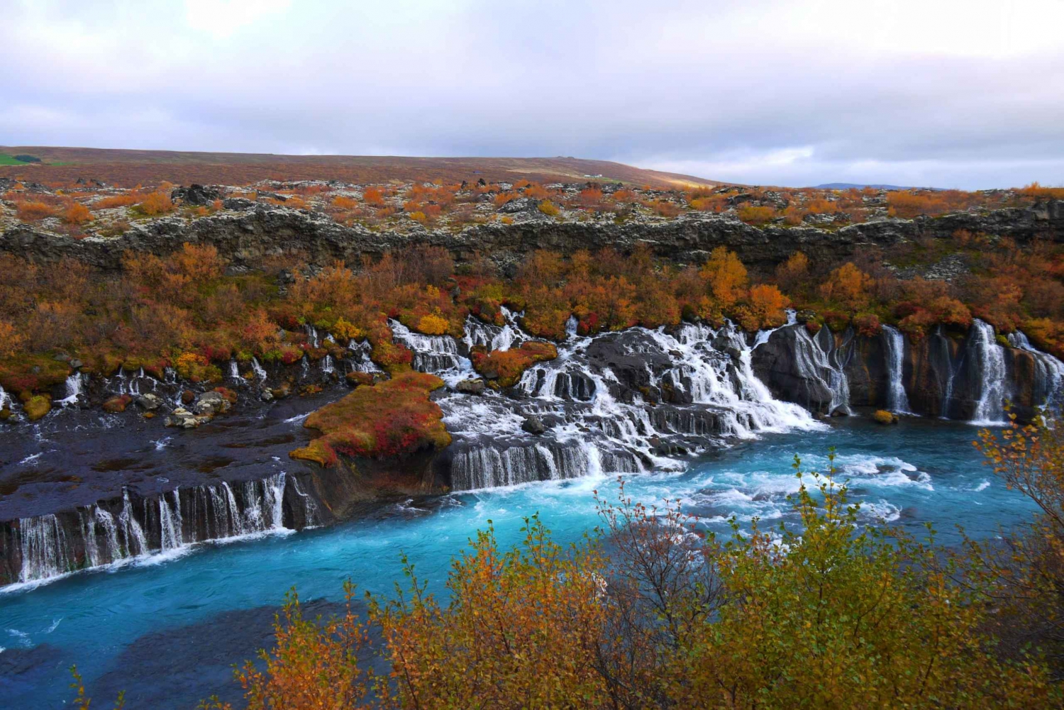 Dag 6: Besøg det vestlige Island Dagen begynder med en kort vandretur op til Grábrók, en vulkankrater. Stop ved Deildartunguhver varme kilde, det legendariske vandfald Barnafoss (Børnenes Vandfald) og Hraunfossar-kaskaden. Du besøger også Reykholt, hjemsted for Snorri Sturluson, den islandske historiker, advokat, politiker, digter og forfatter til nogle islandske sagaer. På vej tilbage til Reykjavik kører du rundt om den maleriske fjord, Hvalfjörður (Hvalfjorden).