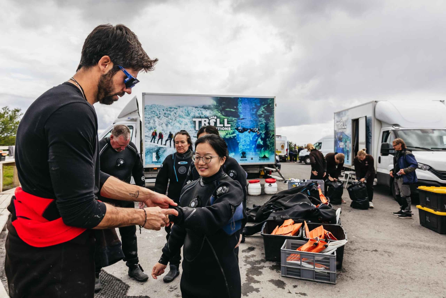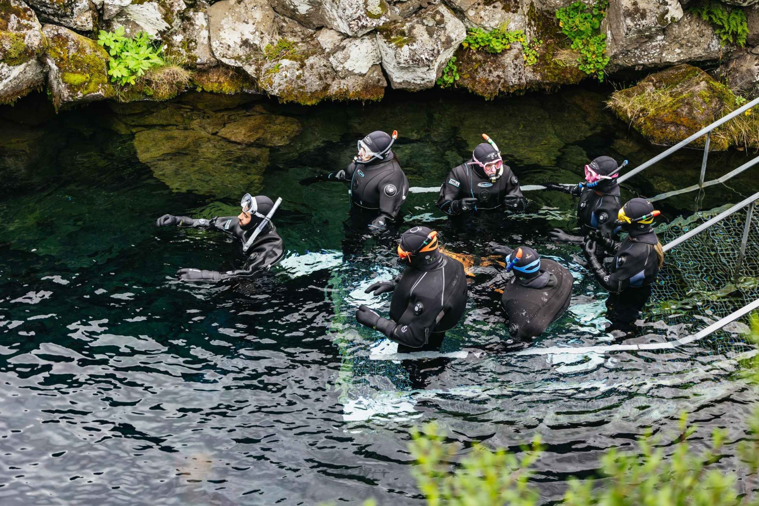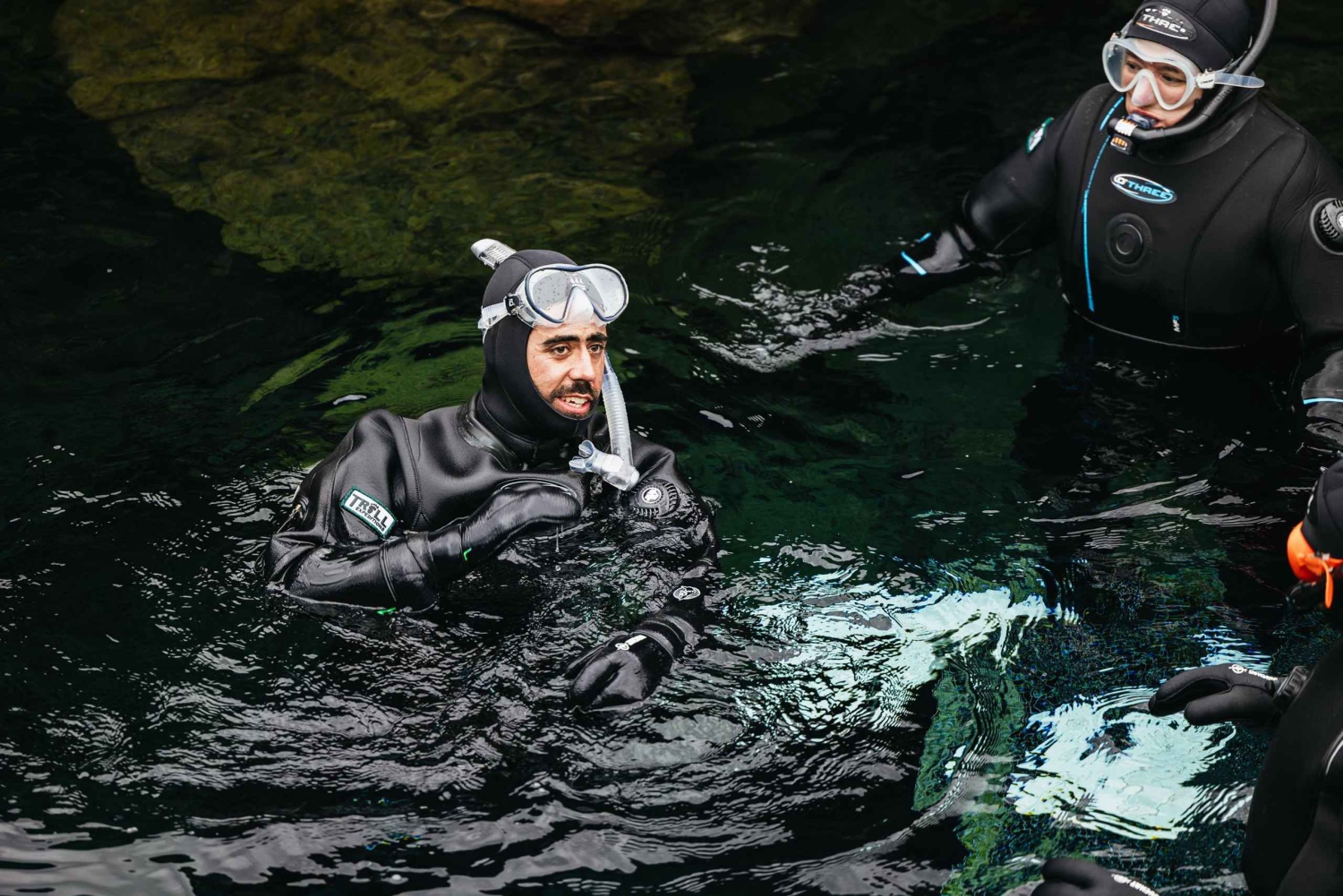 Snorkel mellem to kontinenter ved Silfra-spalten i Þingvellir Nationalpark, et UNESCO-verdensarvssted. Hold dig varm, mens du udforsker denne magiske gletsjerverden under vandet med en tørdragt af høj kvalitet. Ved ankomsten lærer du lidt om sprækken sammen med din guide og bliver udstyret med alt det nødvendige snorkeludstyr. Udforsk dalen, hvor Nordamerikas og Europas tektoniske plader driver længere fra hinanden hvert år, og som ligger i UNESCO-verdensarvsstedet Þingvellir National Park. Svøm gennem det filtrerede krystalklare gletsjersmeltevand sammen med din guide. Beundr de levende farver, og hold øje med lokale plantearter og havdyr som dværgsilke. Beundr de levende farver i gletsjerens smeltevand, mens du svømmer mellem to kontinenter. Efter aktiviteten kan du nyde varme drikke og småkager og få taget billeder med et GoPro som en souvenir af din mindeværdige oplevelse.