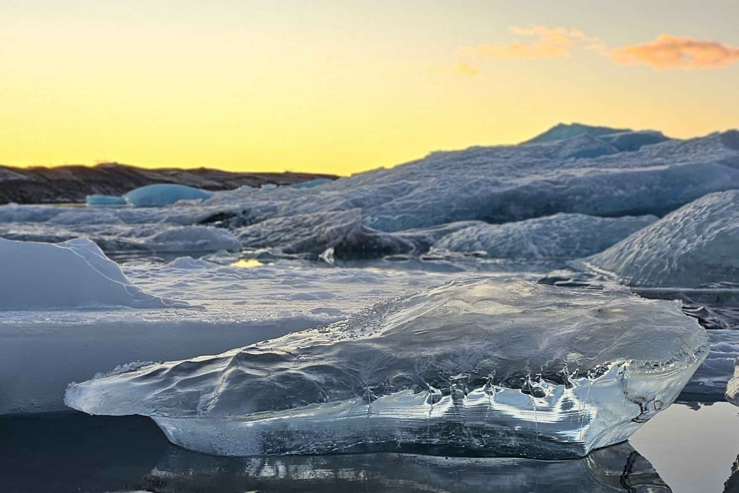 Nyd en privat og uforglemmelig rejse til Islands kronjuveler – den fantastiske Jökulsárlón-gletsjerlagune og den magiske Diamantstrand.