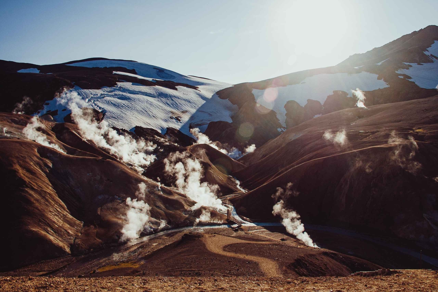 - Vandring gennem Hveradalir-dalen med varme kilder