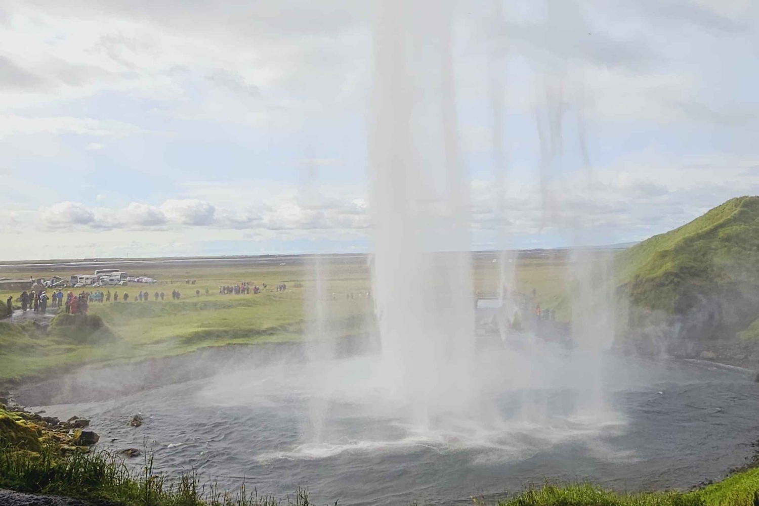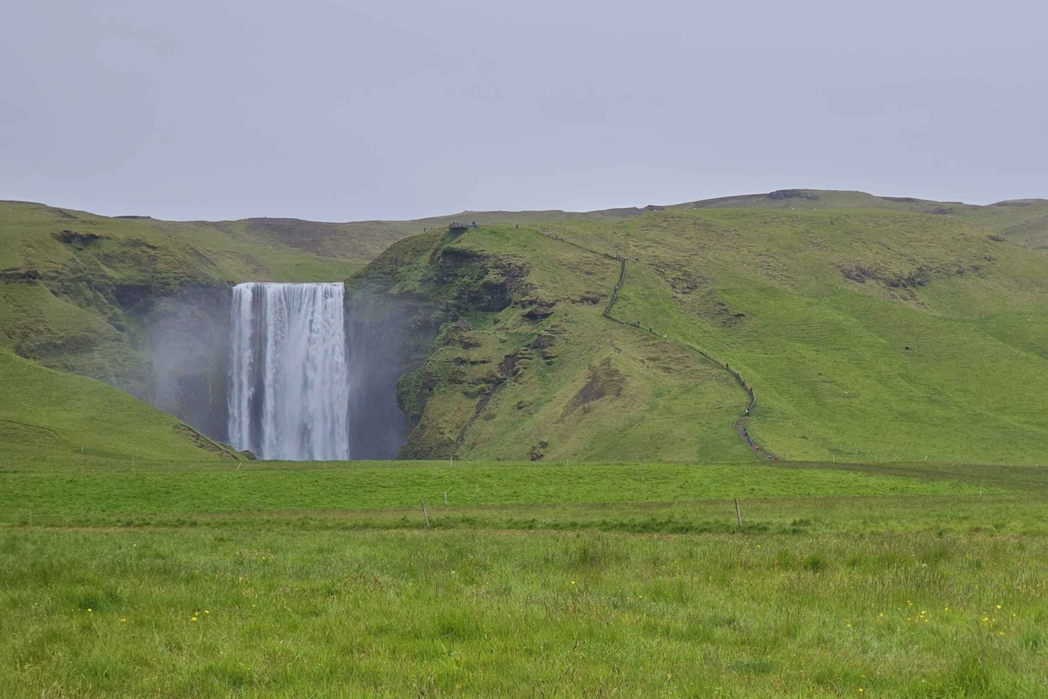 Denne private sydkysttur dækker det hele: Gå bag det magiske Seljalandsfoss-vandfald i Hella, mærk kraften i Skógafoss i Skógar, og udforsk den charmerende by Vík. Besøg den dramatiske Reynisfjara-strand med dens basaltsøjler, og nyd panoramaudsigten fra Dyrhólaey-forlandet. En perfekt blanding af vandfald, kyster og sort strand – alt sammen på en uforglemmelig dag.