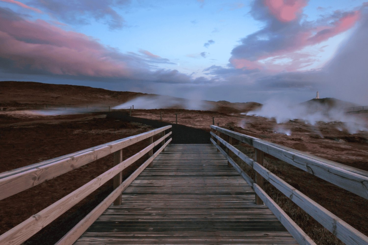 - Gå over en bro, der forbinder den amerikanske og den eurasiske tektoniske plade.