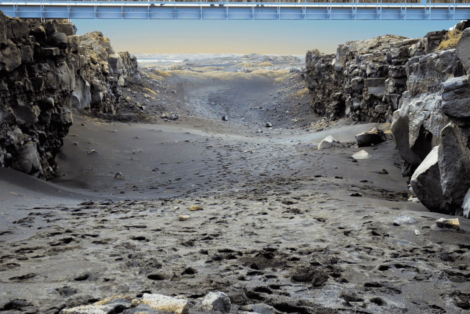 Turen inkluderer en gåtur over en bro, der forbinder den amerikanske og den eurasiske tektoniske plade.
