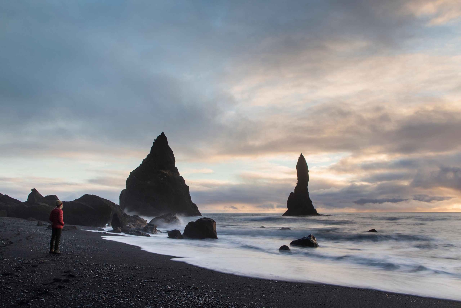 - Gå langs det sorte sand på Reynisfjara-stranden, og se basaltkolonner