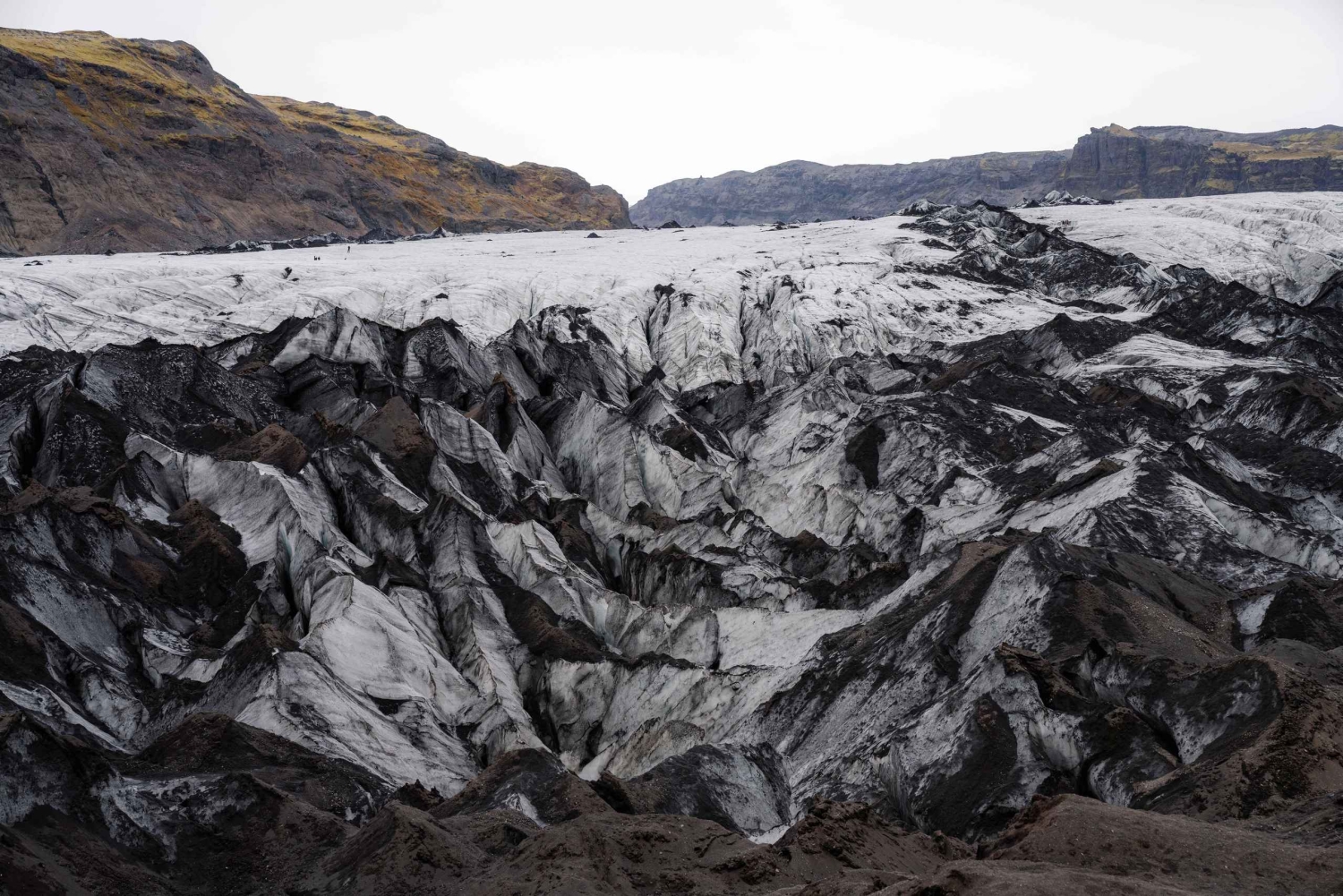 - Lad dig betage af Sólheimajökull-gletsjeren med dens blå is og vulkanske aske