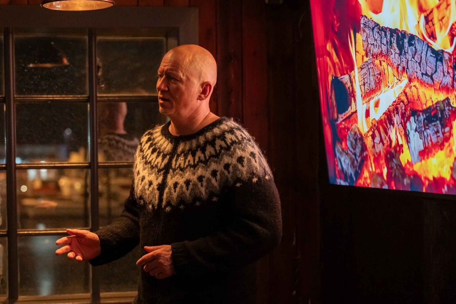 Un experto narrador comparte cautivadoras historias transmitidas de generación en generación, ofreciendo una visión de la vida, los valores y la creatividad de los primeros pobladores de Islandia.