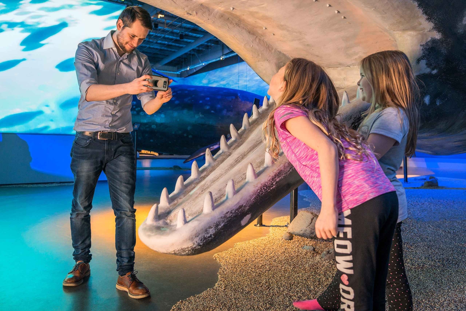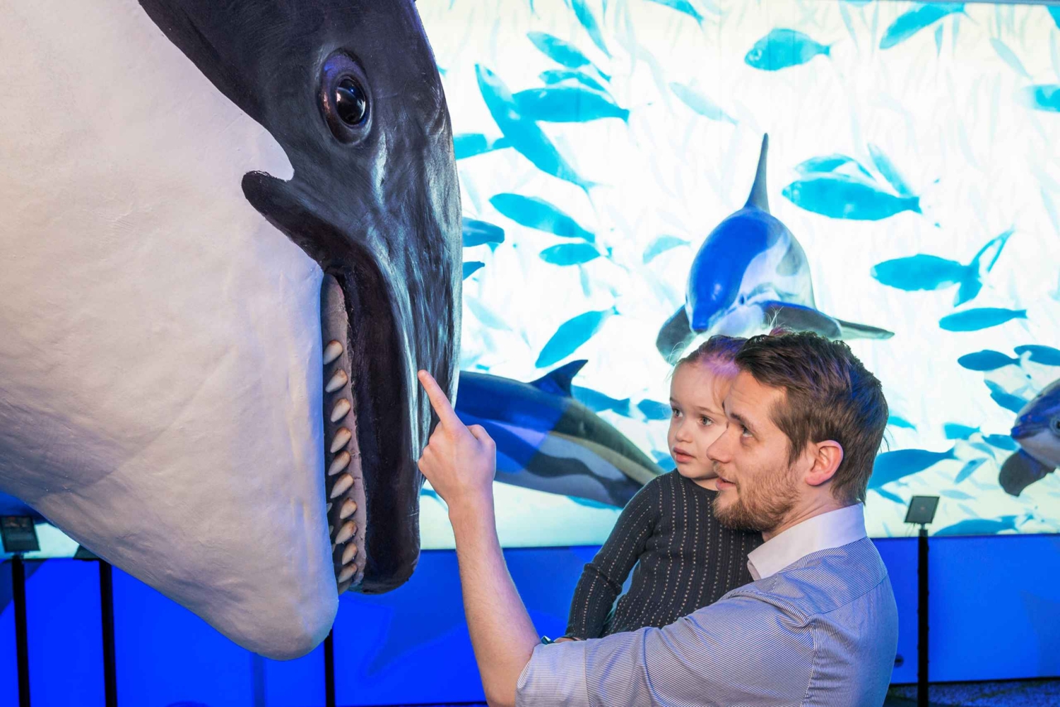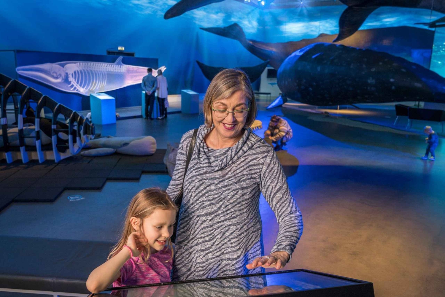 También visitarás la Exposición Ballenas de Islandia. La exposición presenta 23 modelos a tamaño real de todas las especies de ballenas que habitan las aguas islandesas. Sumérgete en la exposición con auriculares de realidad virtual, puestos de información, audioguías y vídeos. Después de la exposición, tómate un café con pastas en la cafetería y relájate en el ambiente de ensueño de la exposición. Ballenas de Islandia ofrece dos visitas guiadas en directo todos los días, disponibles a las 10.30 h y a las 13.30 h. Son gratuitas para todos los titulares de un ticket de entrada.