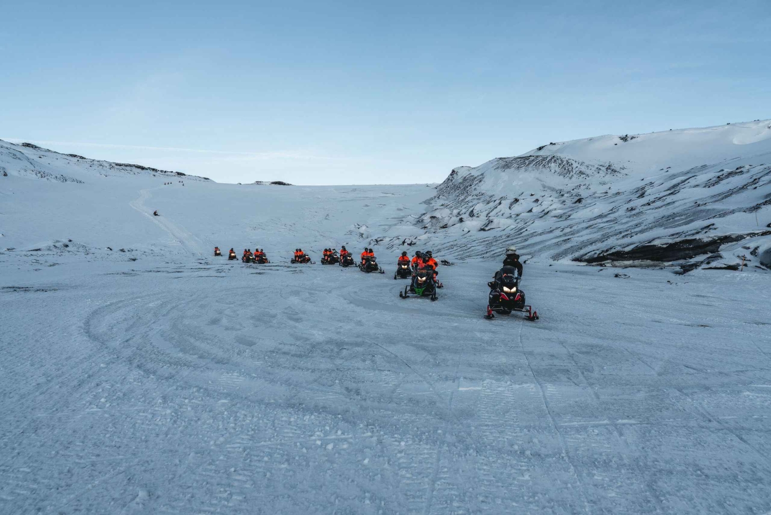 Acompáñanos en un viaje inolvidable saliendo de Reikiavik hacia nuestro Terreno de Aventuras, situado cerca del glaciar Sólheimajökull. Puedes elegir entre una serie de emocionantes actividades, como motos de nieve, senderismo por el glaciar, paseo en quad por la playa de arena negra o kayak por el borde del glaciar. Nuestros guías expertos garantizarán tu seguridad y te proporcionarán fascinantes conocimientos sobre la geología y la historia de la región.