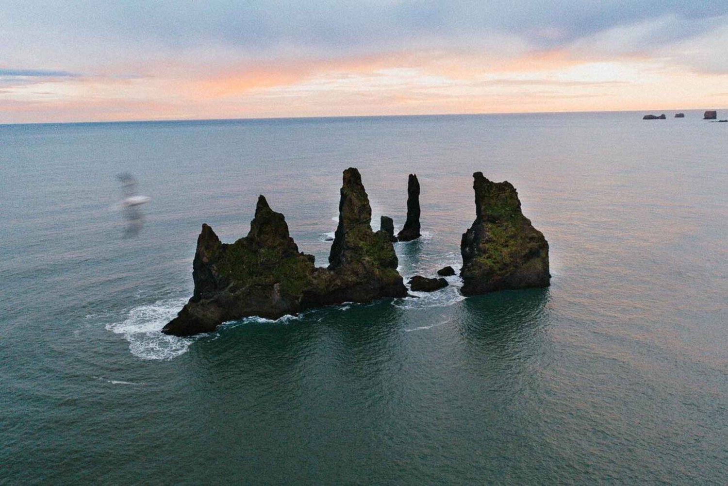 The journey continues to Reynisfjara, the world-famous black sand beach near the charming village of Vík. Known for its volcanic sands, this beach is home to the striking Reynisdrangar sea stacks, which rise dramatically from the North Atlantic Ocean.