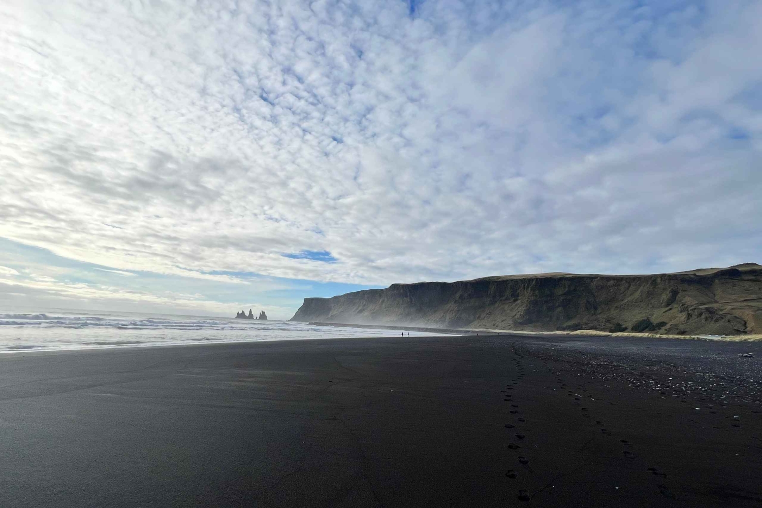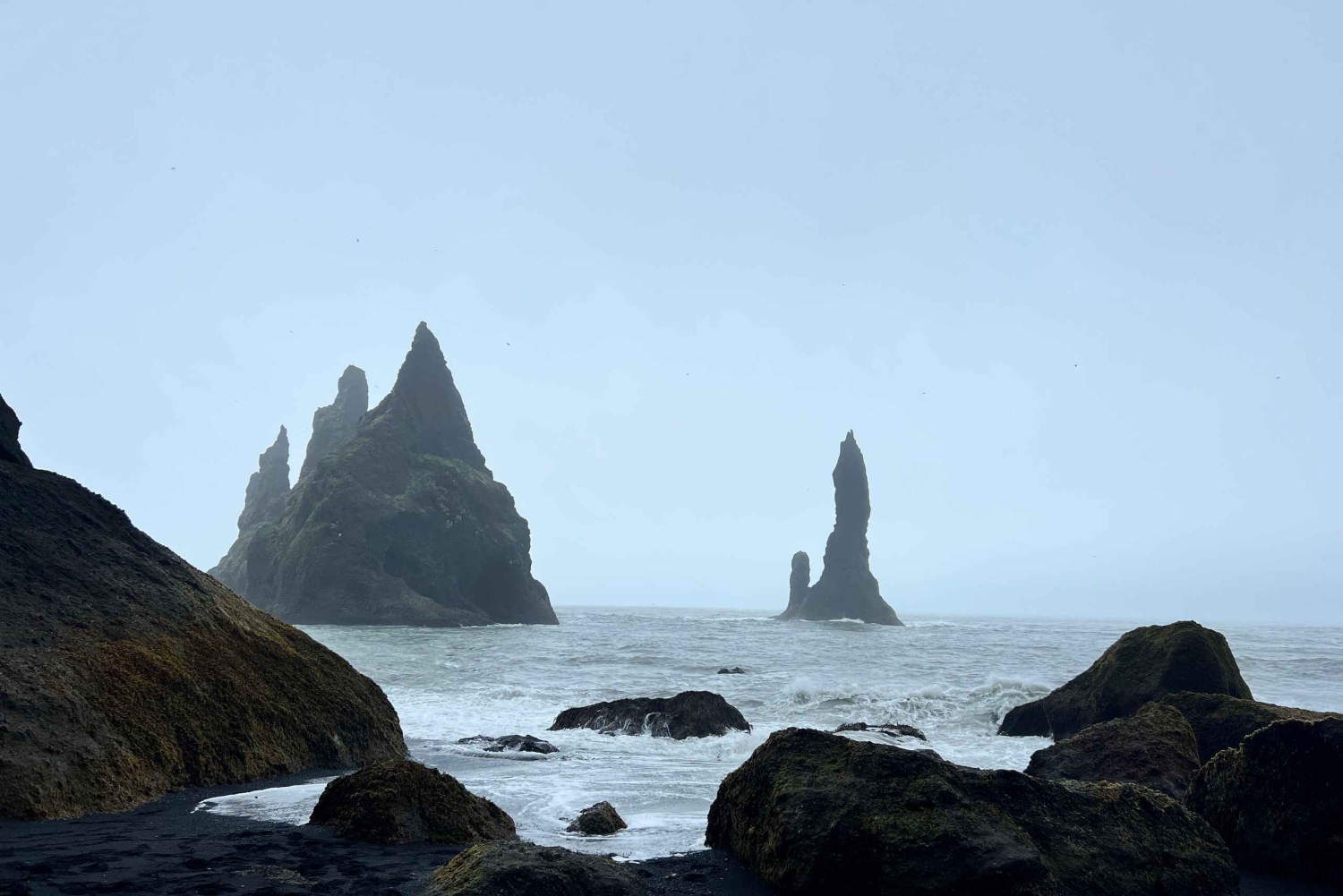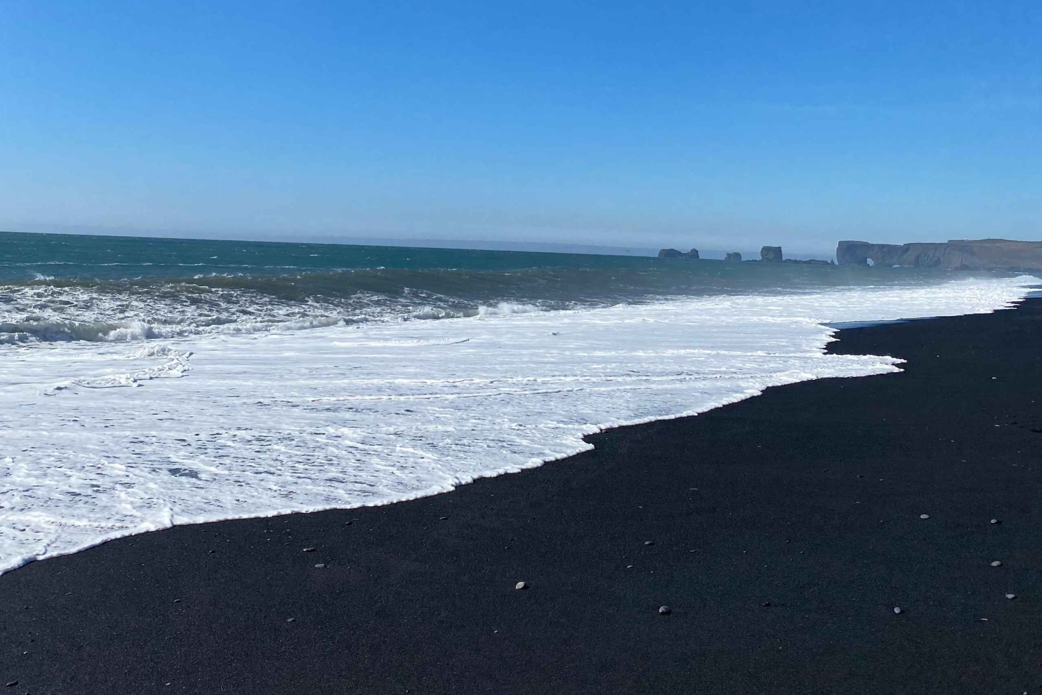 End your day on Reynisfjara Black Sand Beach, admiring the iconic Troll’s Fingers sea stacks at sunset. If weather permits, we’ll venture to the Dyrhólaey Peninsula for panoramic views of Iceland’s rugged coastline
