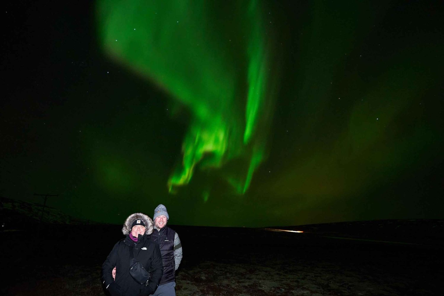 Embark on a thrilling Northern Lights tour with our certified guide, boasting years of expertise in chasing this mesmerizing natural phenomenon. Joining us means you're in for an unforgettable adventure as we journey through the enchanting Icelandic landscape to seek out the best vantage point for witnessing the Northern Lights.