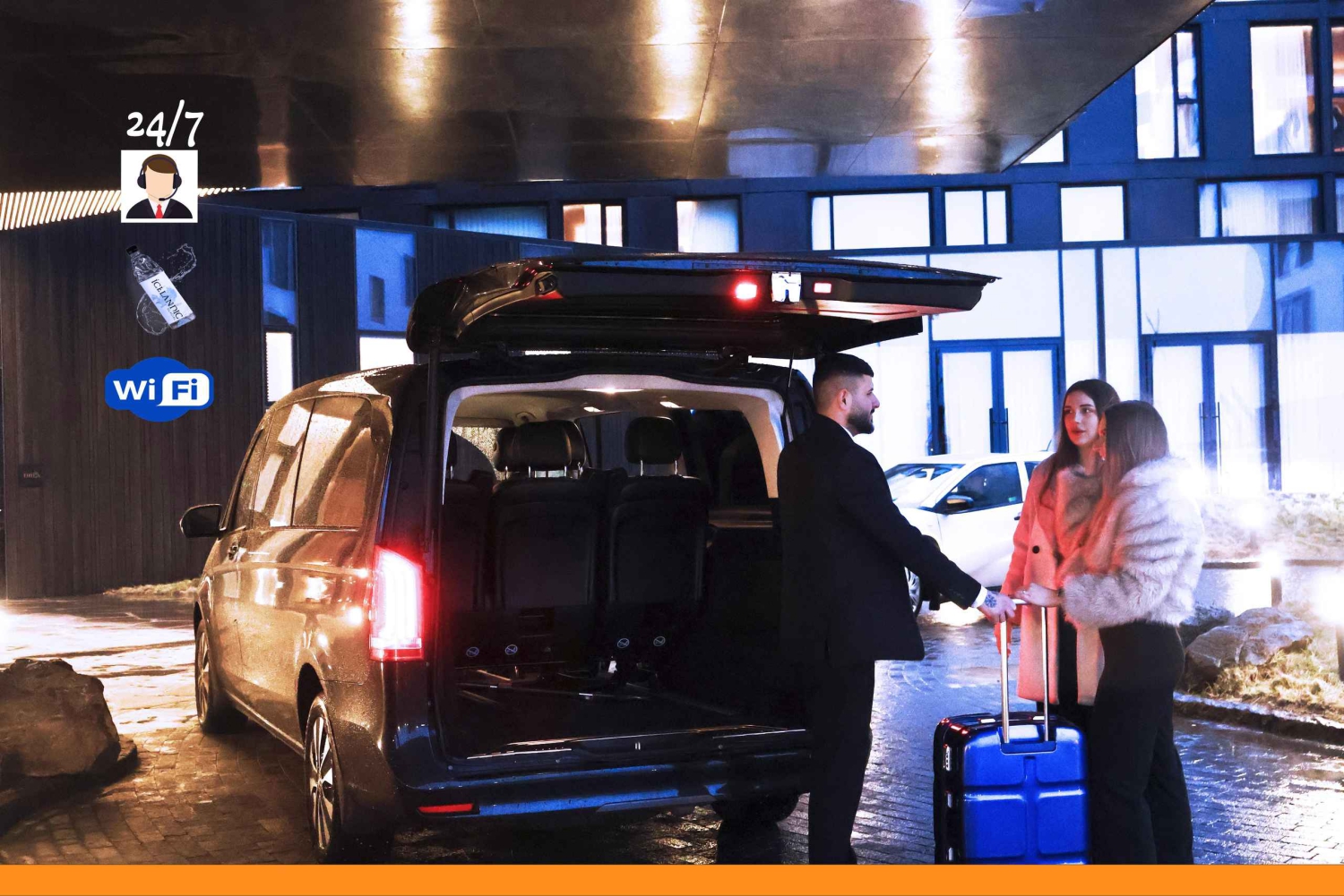For departures from Reykjavik, simply select your preferred pick-up location and time, and our driver will be there promptly. Enjoy a private, spacious ride with bottled water and Wi-Fi as you make your way to the airport.