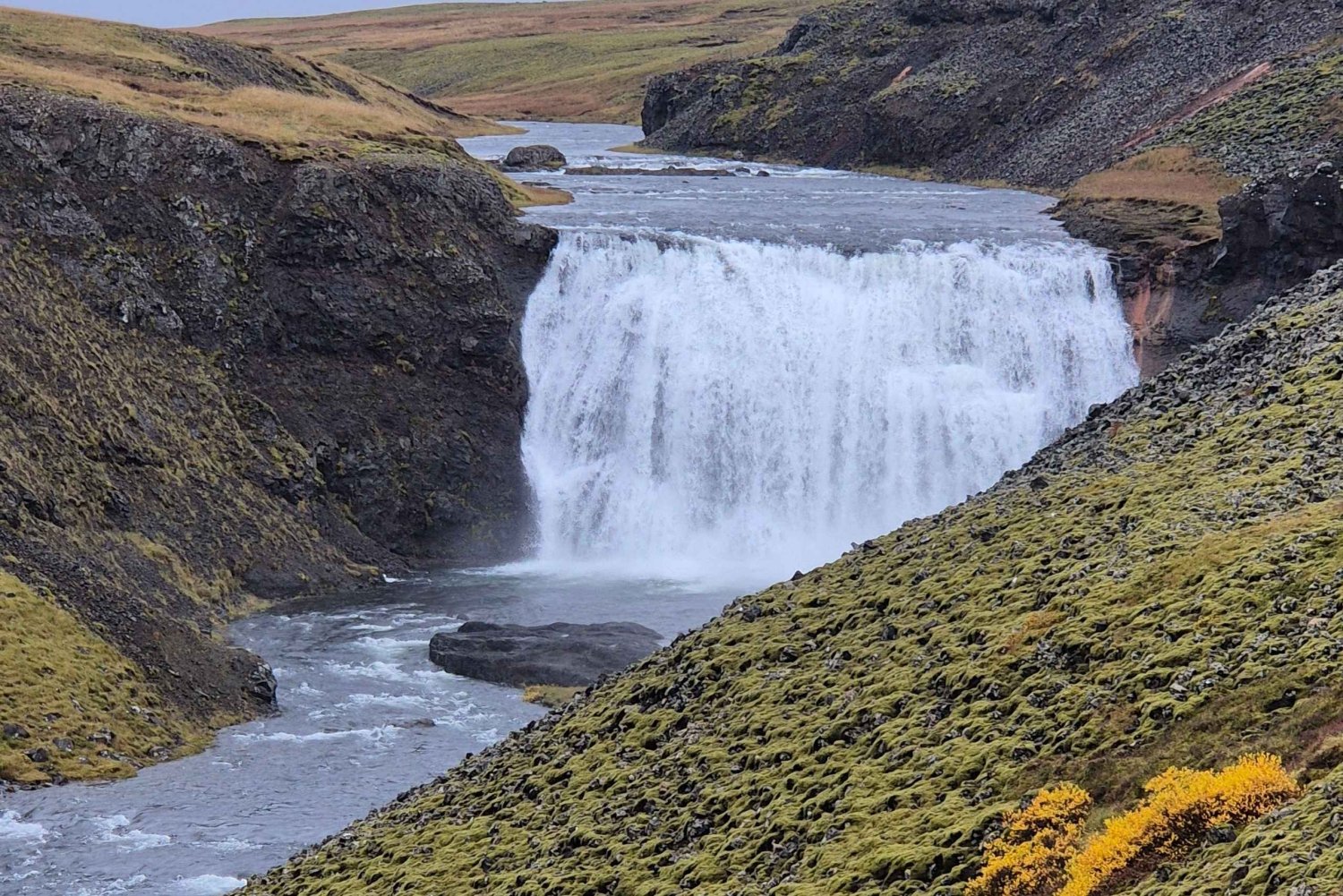 Gullfoss Waterfall: Often referred to as the 'Golden Falls,' Gullfoss is one of Iceland's most iconic waterfalls. The Hvítá River cascades in two stages, creating a dramatic and powerful waterfall that plunges into a deep canyon.