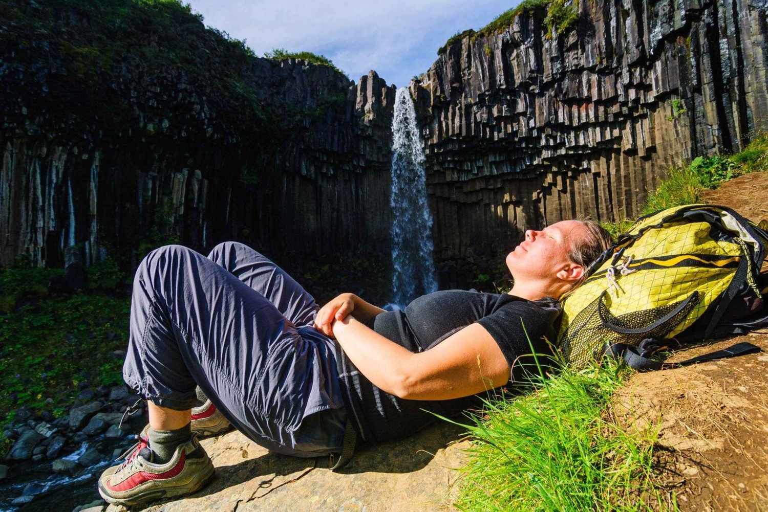 In the afternoon, explore Skaftafell Nature Reserve in Vatnajökull National Park, a haven of glaciers, waterfalls, and rich greenery. Highlights include Svartifoss Waterfall, framed by striking basalt columns, and numerous hiking trails offering panoramic glacier and mountain views.
