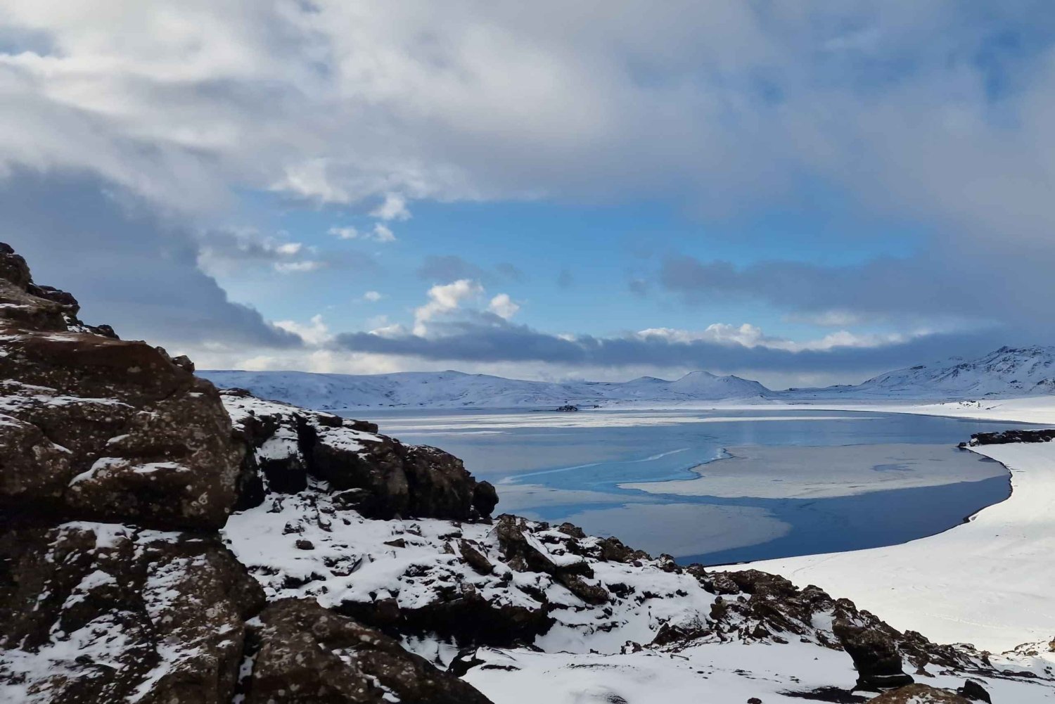 A stop at Kleifarvatn Lake offers a moment of calm amid the volcanic landscape. The lake, one of Iceland’s deepest, changes its size depending on geothermal activity below. On quiet days, its mirror-like surface reflects the surrounding mountains in spectacular detail.