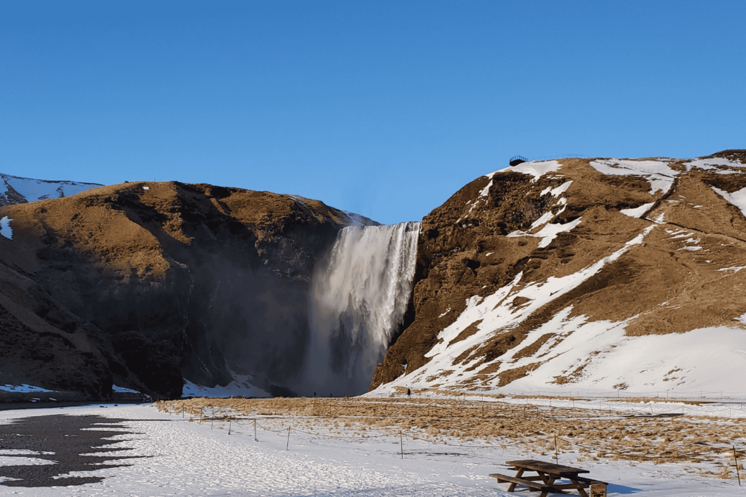 Begin your journey with a visit to the stunning Seljalandsfoss waterfall. Walk behind the cascading veil for an unforgettable experience. Then, head to Skogafoss waterfall, where rich folklore adds to the magic of the powerful falls.