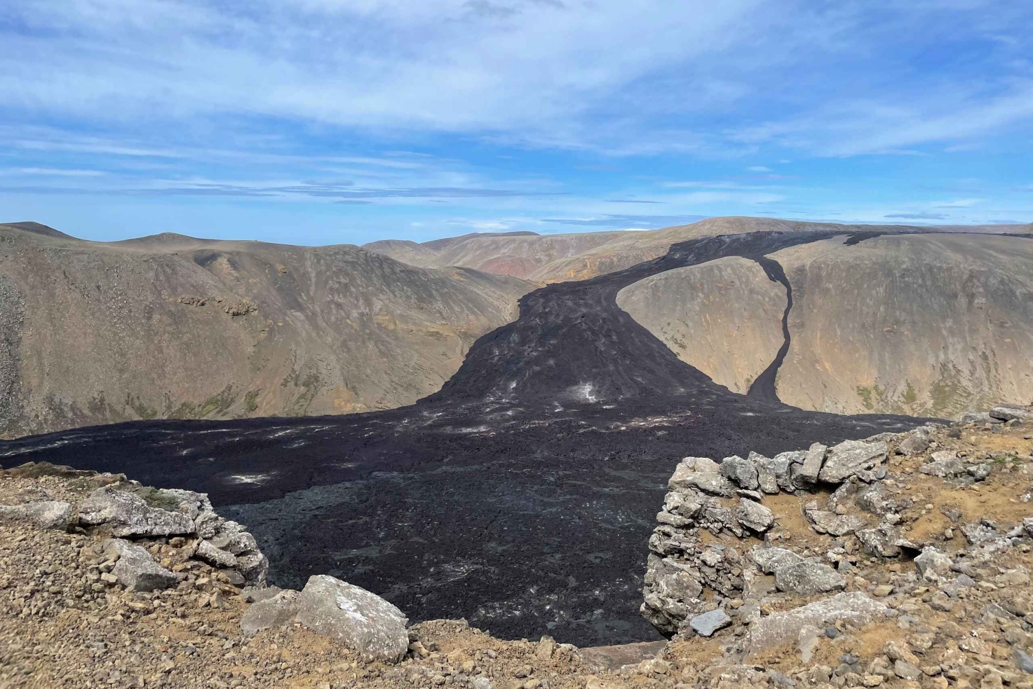 Next, we’ll venture to Fagradalsfjall, one of Iceland’s most recent volcanic sites. A 45-minute hike brings you to awe-inspiring lava fields, still warm from recent eruptions. From a breathtaking vantage point, take in the stark beauty of fresh lava flows sculpting Iceland’s dynamic terrain. This 5.5 km (3.4-mile) hike, rated moderately challenging, offers incredible photo opportunities and is suitable for those in good physical shape.