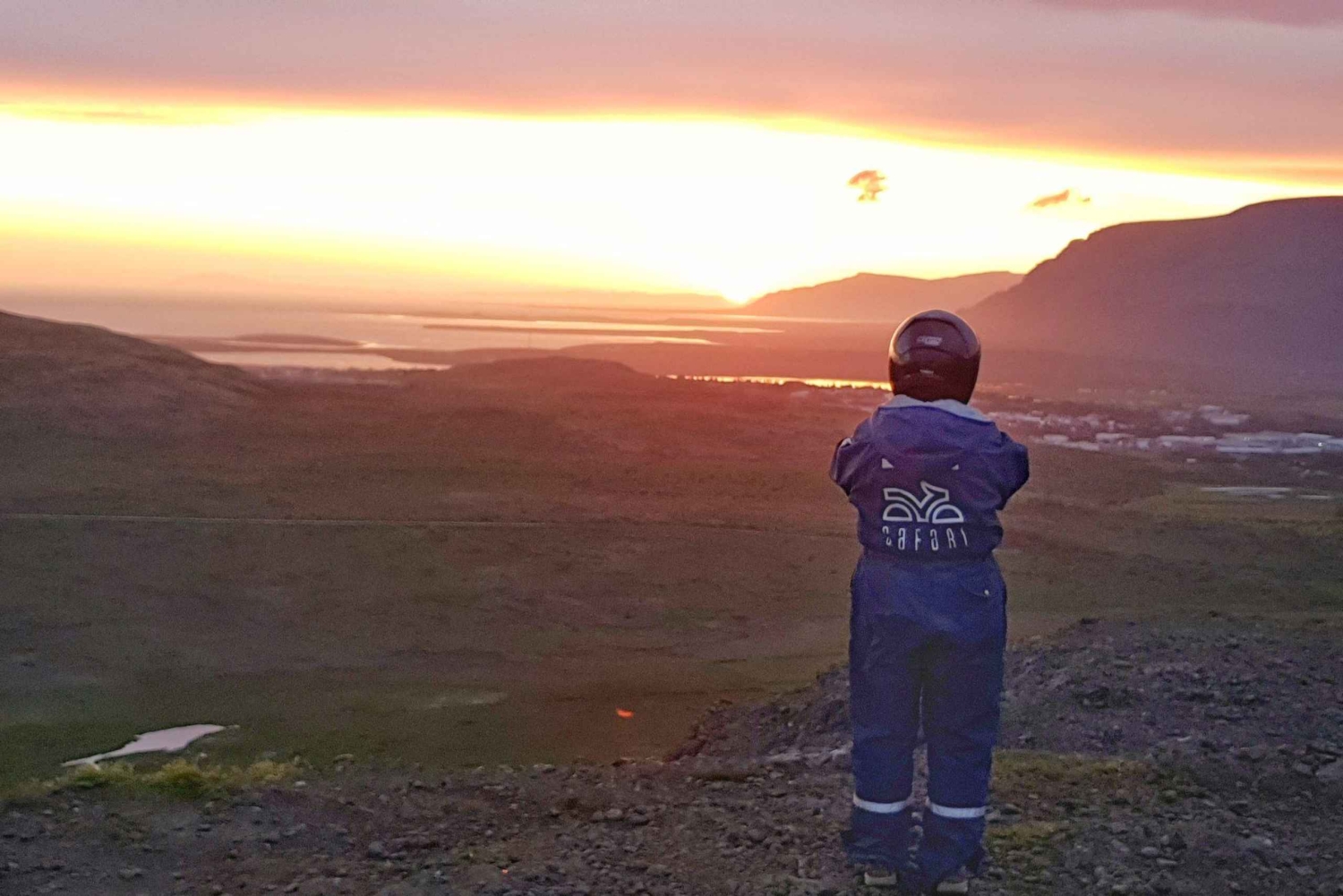 Lähde tälle upealle 2 tunnin mönkijäretkelle Islannin ikuiseen keskiyön aurinkoon kesällä. Islannissa aurinko paistaa lähes 24 tuntia vuorokaudesta!