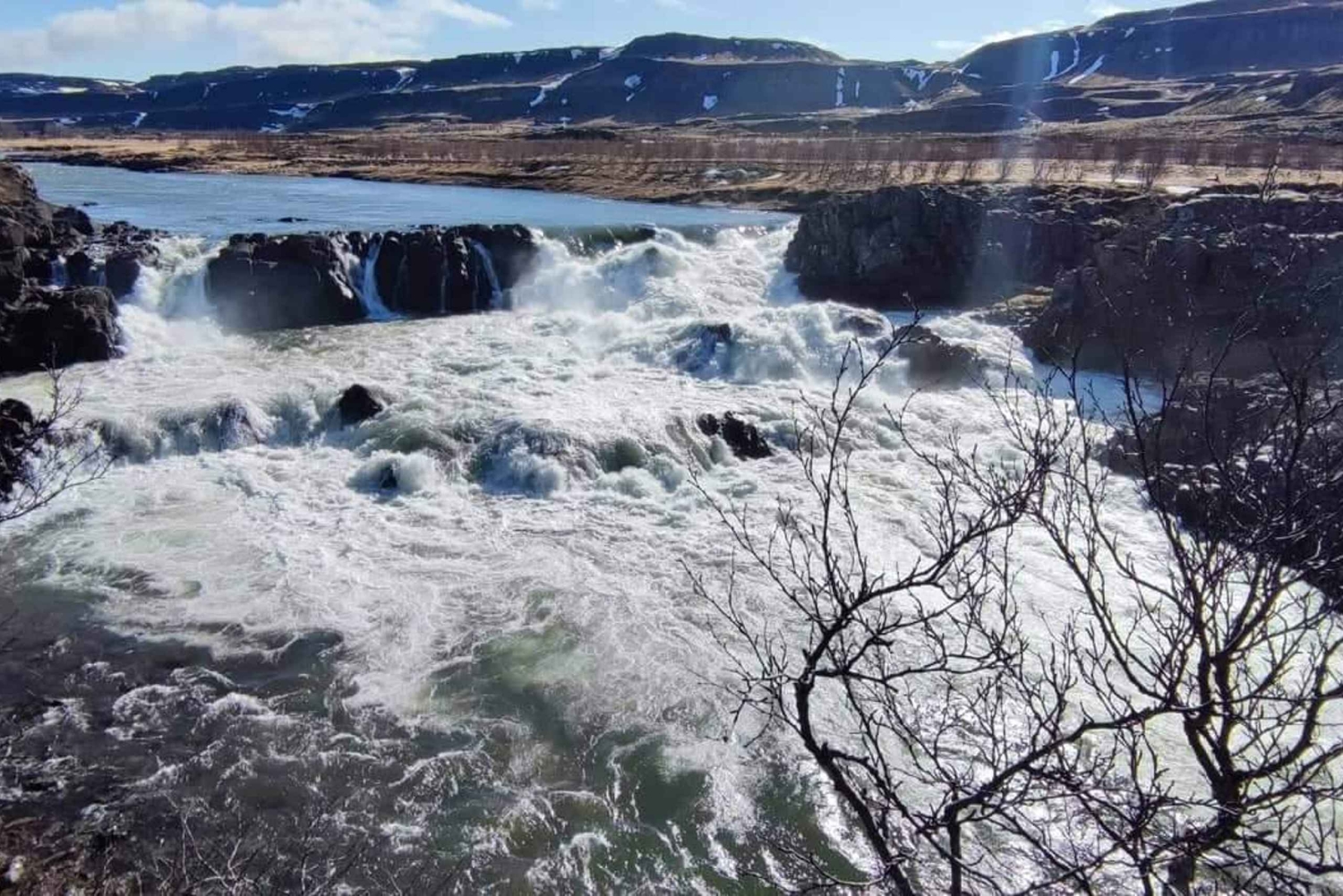 Sinut noudetaan Reykjavikista, ja kierros alkaa ajamalla luonnonkauniilla reitillä 1 Borgarnesin kaupunkiin. Sieltä vierailemme Glannin vesiputouksella, Deildartunguhverilla – Euroopan voimakkaimmassa kuuma lähde