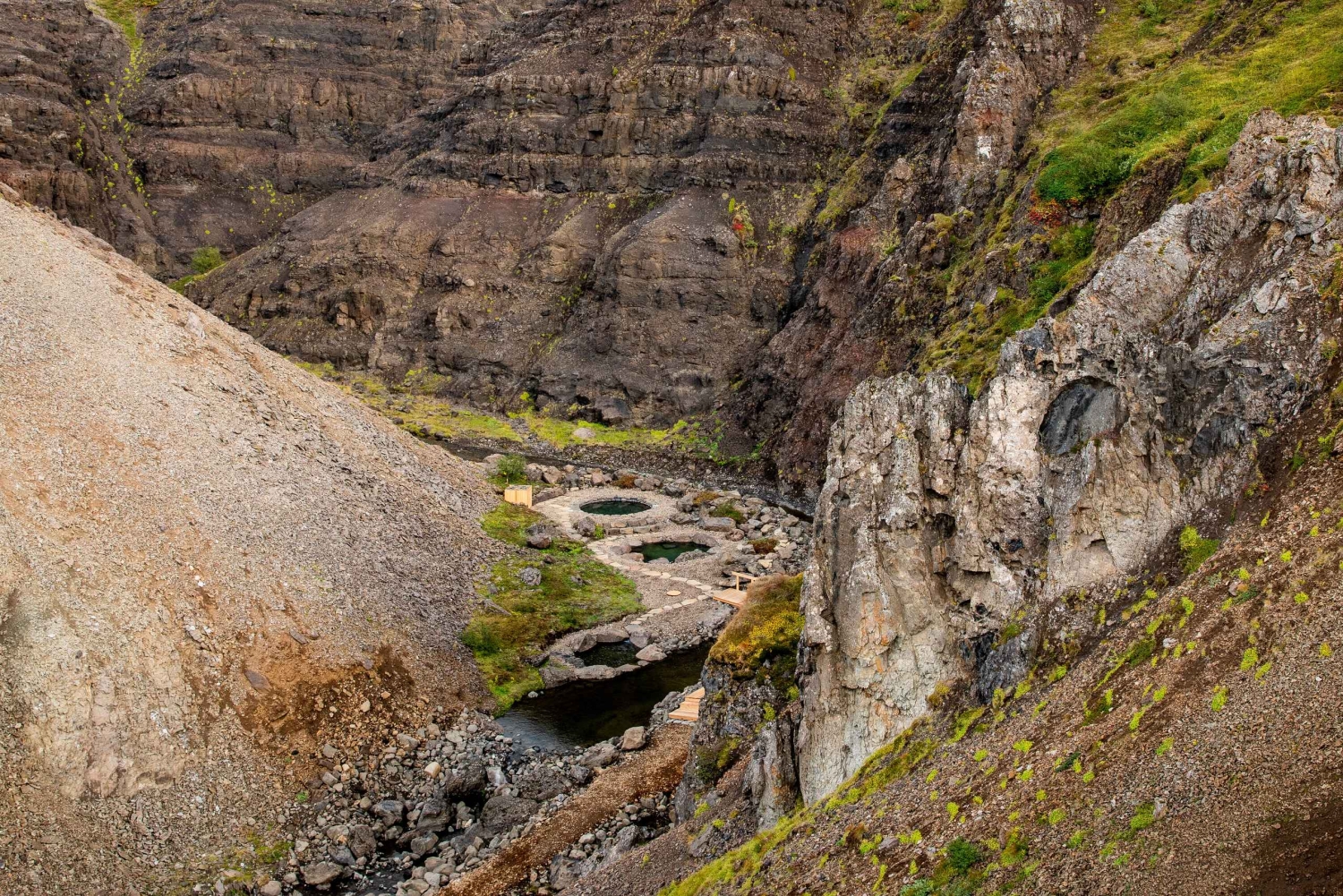 - Vieraile Vidgelmirin laavaluolassa tai Husafellin kanjonin kylpylöissä