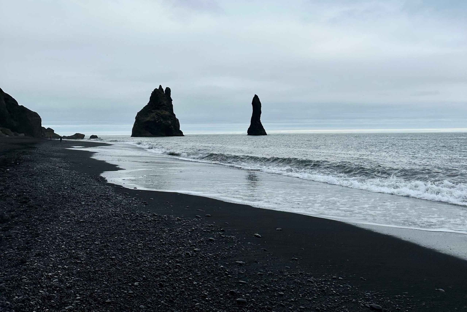 Rannan silmiinpistävä musta hiekka on peräisin vulkaanisesta tuhkasta, ja se luo upean kontrastin valtameren aaltojen valkoista vaahtoa vasten. Näe, kuinka Reynisdrangarin meripaalut kohoavat merestä aivan rannikon edustalla. Legendan mukaan ne ovat jäänteitä peikoista, jotka auringonvalo muutti kiveksi.