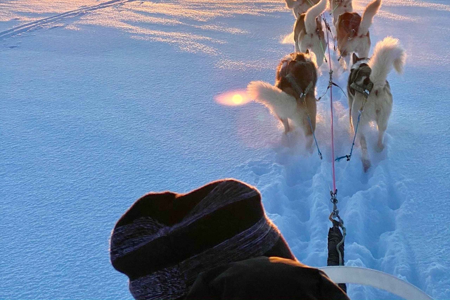 Keskellä kyytiä pysähdymme tauolle ja tapaamme koirat lähietäisyydeltä. Tämä on tilaisuutesi ottaa ikimuistoisia kuvia, silittää koirien vatsaa ja nauttia halauksista! Huskymme rakastavat ihmisten kanssa olemista ja poseeraavat mielellään kuvissa. Nämä hellyyden hetket ovat heille yhtä tärkeitä kuin itse juoksu.