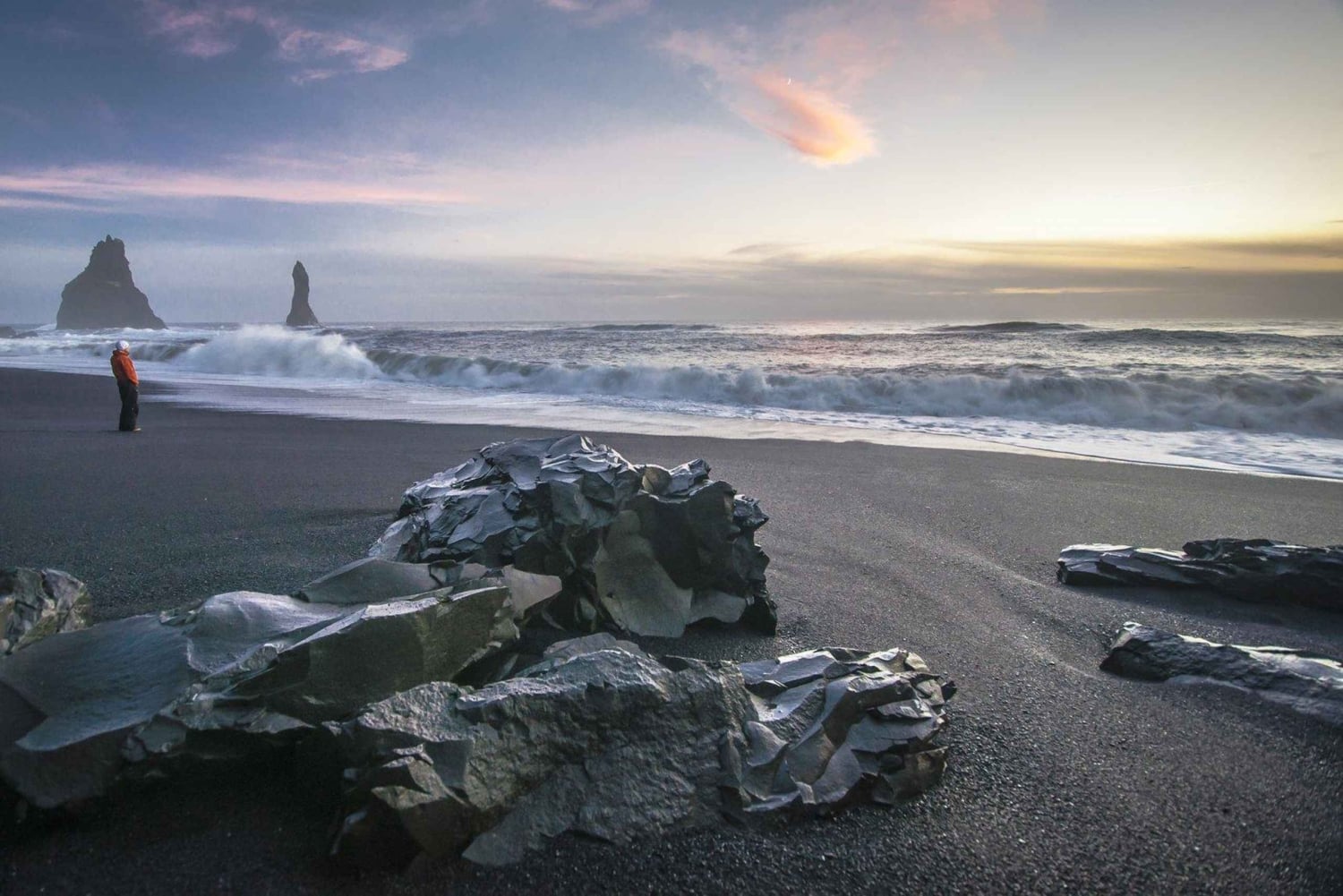 - Visite de la côte sud et découverte des glaciers, des plages noires et des cascades