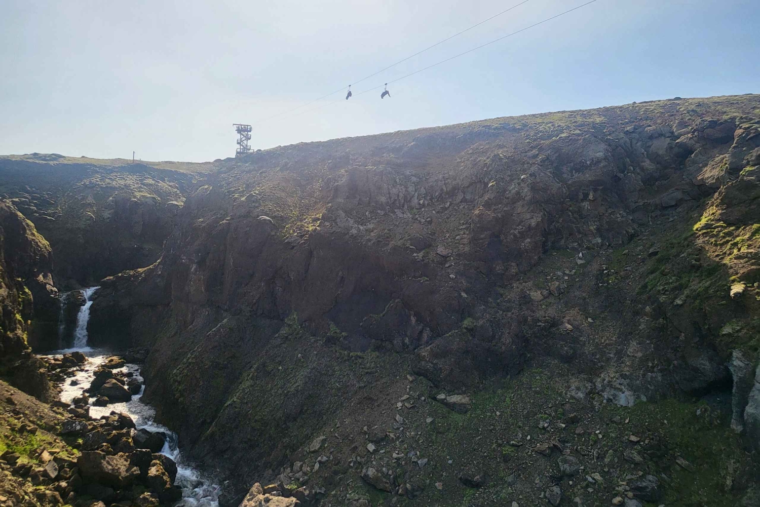 - Découvrez la tyrolienne la plus longue et la plus rapide d'Islande, d'une longueur d'un kilomètre.