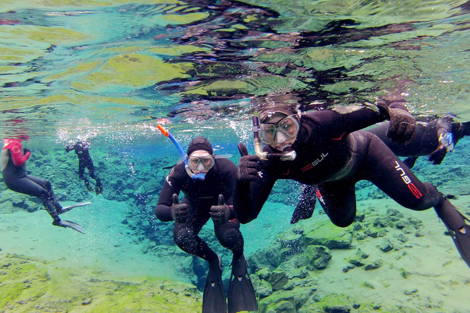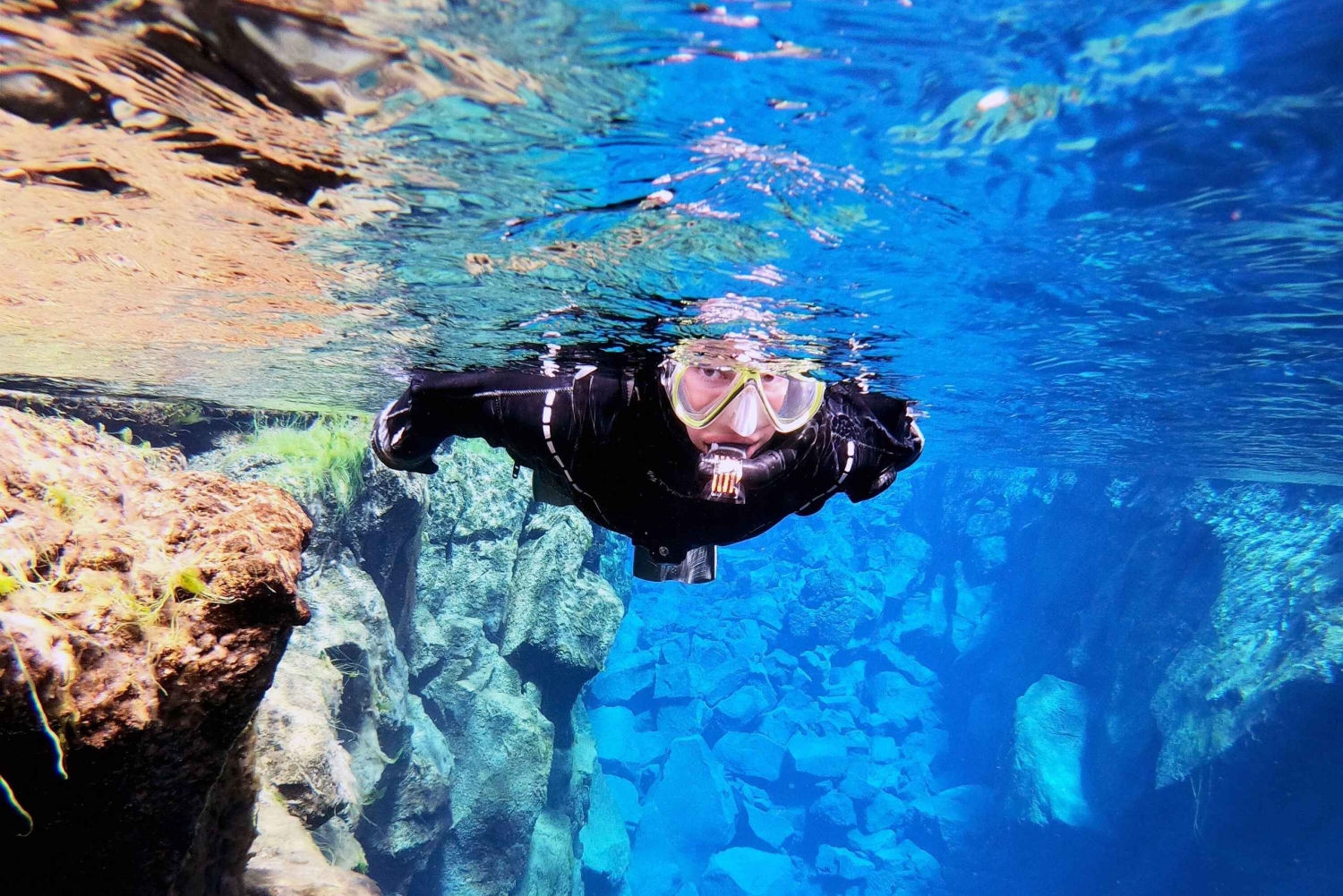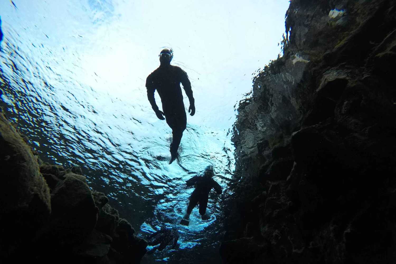 洞窟探検とシュノーケリングは、アイスランドで 1 日を過ごすのに最適な組み合わせです。アイスランドの自然を存分に体験できます。溶岩原の隠れた世界を徒歩と水中で探検します。