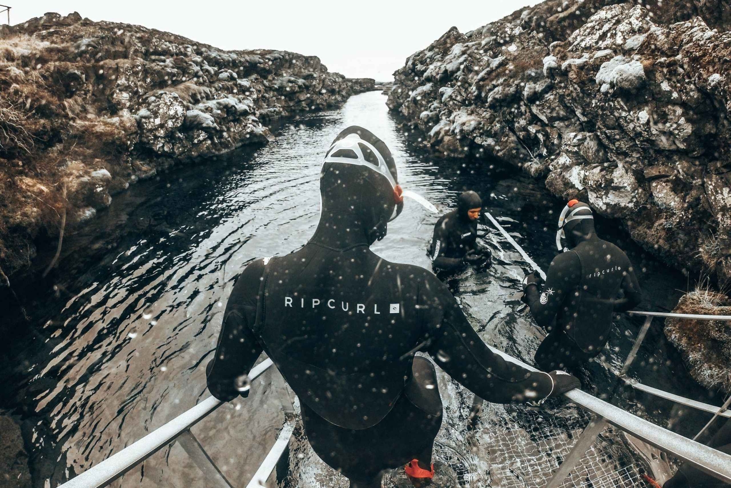 シルフラは最深部で約60〜63メートルです。シルフラは真水割れ目で、水がとても澄んでいるため、端から端までほぼ見渡すことができます。渓谷の表面でシュノーケリングをするので、ダイビングの経験は必要ありません。必要な装備はすべてご用意しており、お客様の興味に応じてウェットスーツやドライスーツでのシュノーケリングもご提供いたします。アドベンチャー バイキングスはアイスランドでウェットスーツ シュノーケリングを提供している唯一の会社です。より自由なシュノーケリング体験をお楽しみいただけるので、ぜひウェットスーツ シュノーケリングをお勧めします。