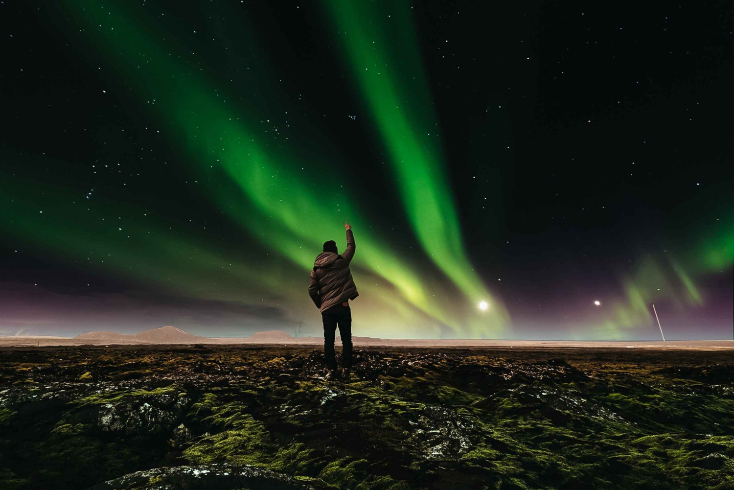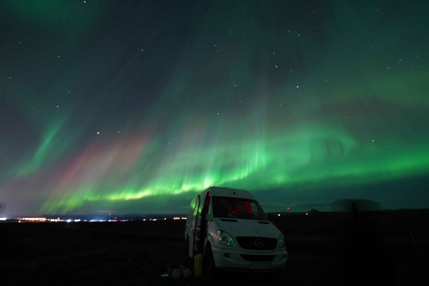 地元のガイドと一緒にレイキャビク郊外を旅して、オーロラを体験しましょう。本物のアイスランドのチョコレートで作った自家製ホットチョコレートで温まりましょう。 ツアーは、中心部にある宿泊施設からの便利な送迎サービスで始まります。短いお迎えの後、ツアー車両に乗り込み、その日の夜に目的地に向かいます。ツアーガイドは、気象学者と綿密に相談しながら、毎晩新しいユニークな場所を選びます。各ツアーでは、気象学者の報告に基づいて場所を案内するため、このつかの間の魔法のような光景を目にする最高のチャンスが得られます。 ツアー中、ガイドはアイスランドの文化、自然、歴史、アイスランドの人々に関する情報と素晴らしい洞察を提供します。また、凍えるような冬の夜に血を温めるのに最適なホットチョコレートを飲む機会もあります。伝統的なアイスランドのペストリーもおやつとしてお楽しみいただけます。 このツアーは冬季のみご利用いただけます。夏季は光量が少ないため、オーロラを見られる可能性が低くなります。オーロラを見られる可能性は常に高いですが、オーロラを見られる可能性が低い場合は、ツアーガイドがツアーをキャンセルします。キャンセルの場合でも、バウチャーは無料で別の日にご利用いただけます。Includes