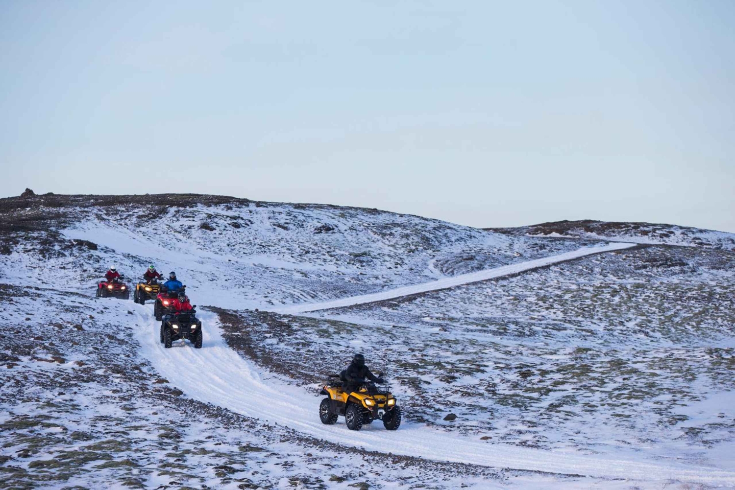 Je volle dag begint op een quadbasis op slechts een paar minuten van het centrum van Reykjavík. Ervaar de vrijheid van het rijden in een ATV naar de top van de berg Hafrafell voordat je in een bus stapt om de beroemdste bezienswaardigheden van IJsland te ontdekken tijdens deze tour.