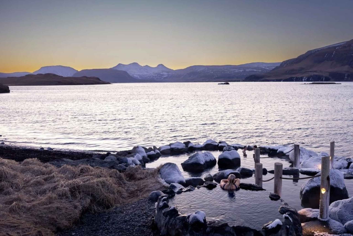 - Ontspan tot slot in het rustgevende water van de warmwaterbronnen van Hvammsvík