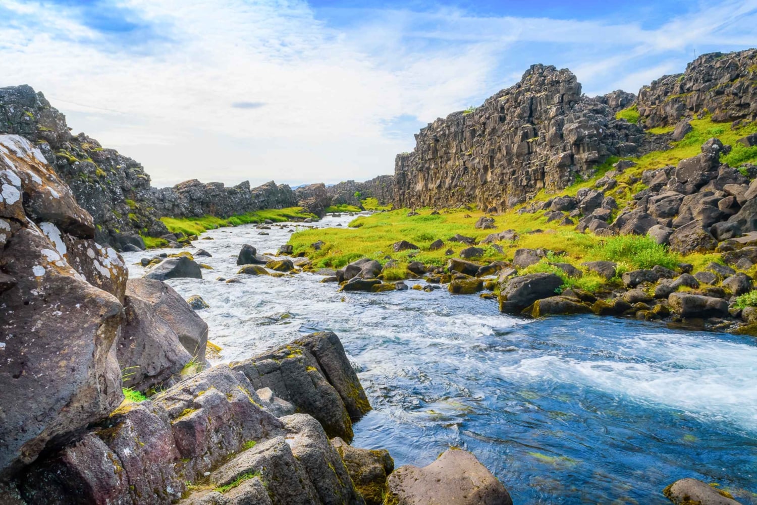 Gå mellom to kontinenter i Thingvellir nasjonalpark, som står på UNESCOs verdensarvliste. Det er her de nordamerikanske og eurasiske tektoniske platene driver fra hverandre og sakte omformer landskapet. I tillegg til sin geologiske betydning er Thingvellir også fødestedet til Islands demokrati, som hjemsted for verdens eldste parlament, grunnlagt i 930 e.Kr.