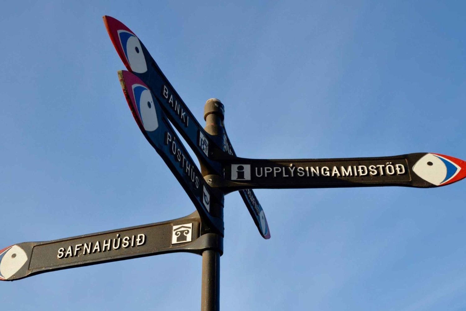 Twoja eksploracja wyspy zaczyna się w Stafkirkjan, pięknej replice tradycyjnego kościoła drewnianego, który upamiętnia dziedzictwo islandzkich Wikingów. Kontynuuj podróż do latarni morskiej Urðaviti, położonej na surowej, skalistej krawędzi wybrzeża, gdzie rozległe widoki na ocean i wyspy nadają ton całemu dniu.
