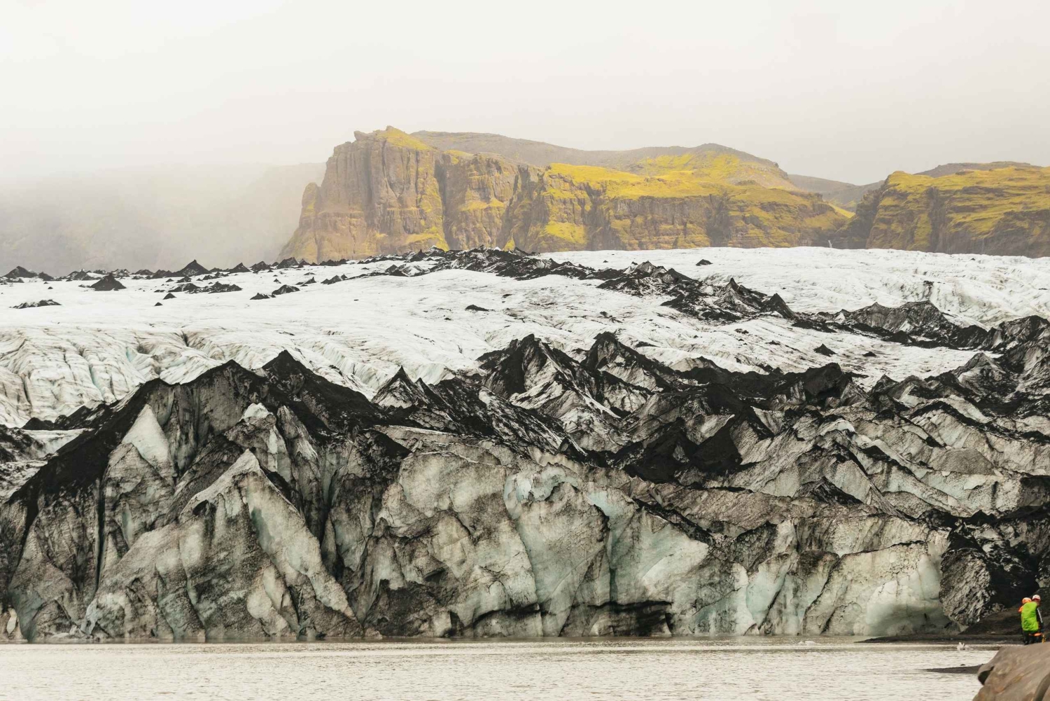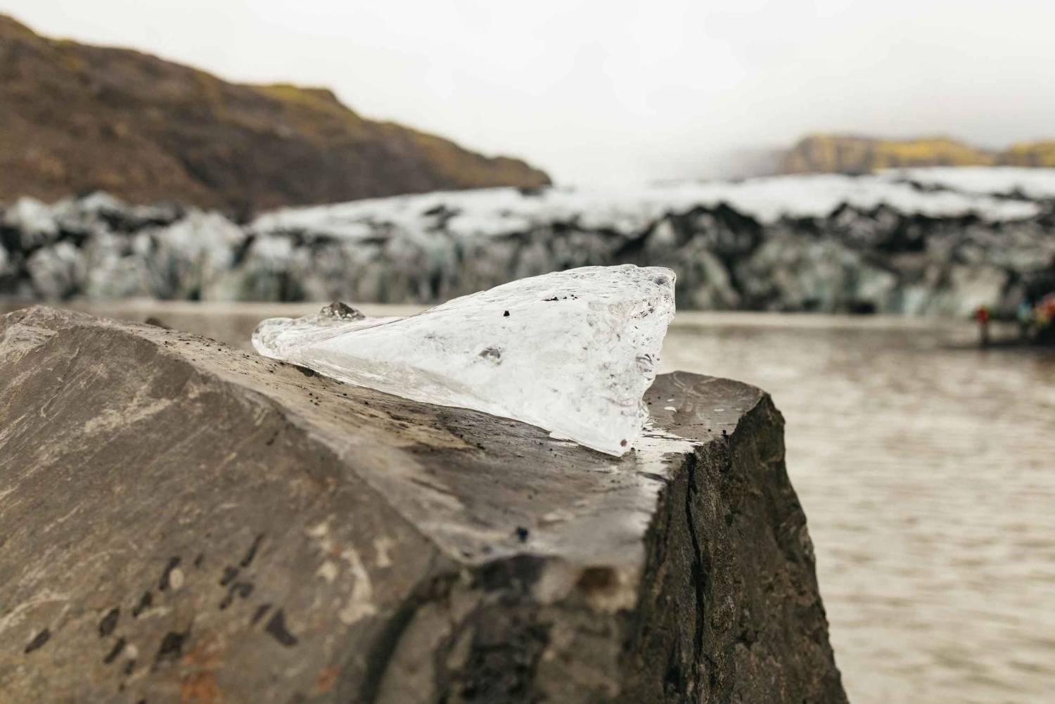 Se você selecionou a opção com a caminhada na geleira (disponível em datas selecionadas entre abril e outubro), você embarcará em uma caminhada guiada pela geleira Solheimajokull. Ouça o estalar dos cristais de gelo sob seus pés e aproveite uma rara oportunidade de vivenciar uma geleira de perto.