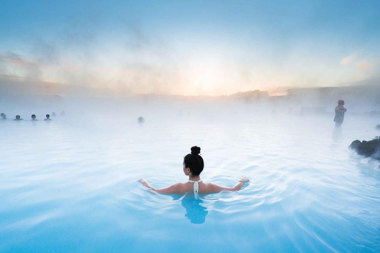 Depois de tomar banho e vestir o teu fato de banho, é hora de caminhar até as icónicas águas azuis. Abrangendo 8.700 metros quadrados de água geotérmica do mar, a lagoa oferece novas dimensões de bem-estar, levando-te à harmonia com os poderes transformadores da natureza.