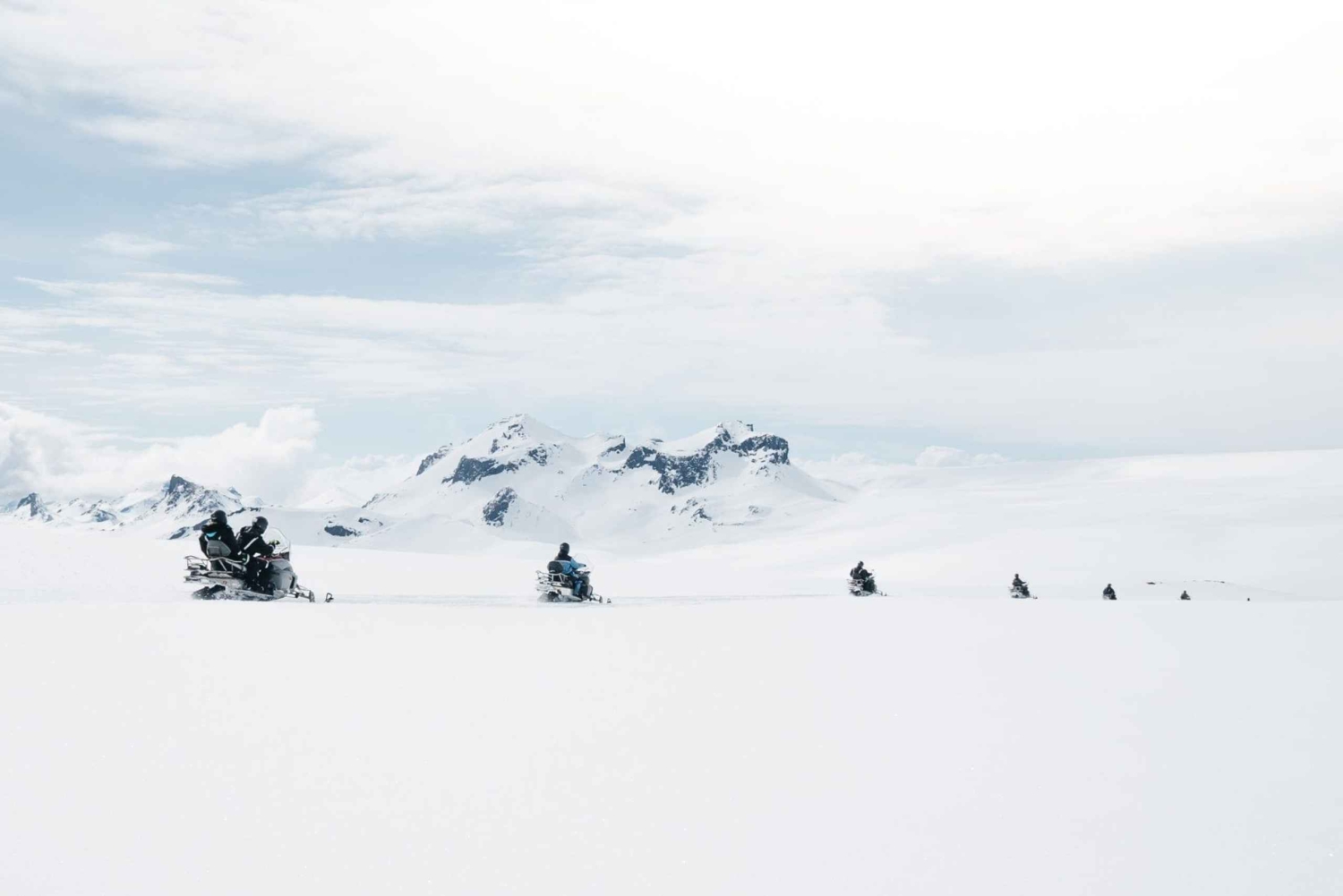 Primeiro, o teu dia começa com uma viagem pitoresca pelas terras altas e acidentadas da Islândia. Aqui, vais testemunhar paisagens vulcânicas dramáticas e estradas de montanha remotas que te levam até à orla de Langjökull. Sabias que é o segundo maior glaciar da Islândia? Em segundo lugar, os teus guias de montanha da Islândia preparam-te para o passeio de moto de neve em Langjokull, equipando-te com um fato e um capacete. Além disso, também te darão uma aula e um resumo de segurança sobre como operar o motoneve. Em terceiro lugar, vais estar pronto para deslizar pela neve, apreciar as vistas panorâmicas e sentir a emoção de experimentar o glaciar de uma perspetiva diferente!