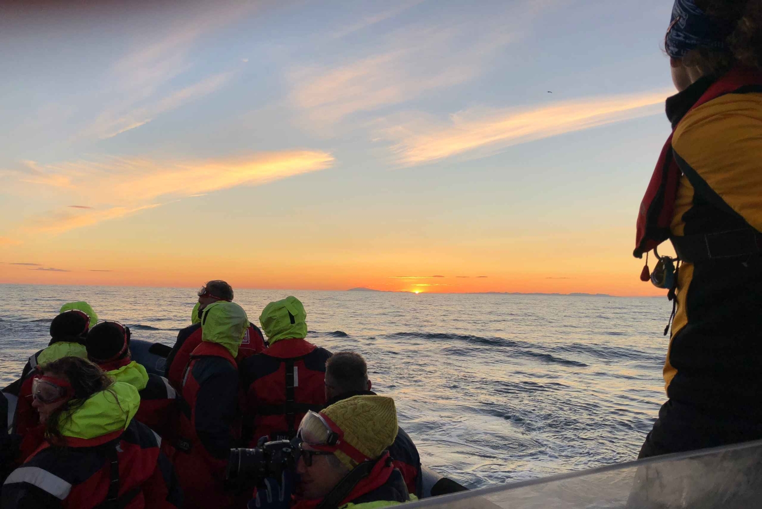 Durante as brilhantes noites de verão islandesas, o sol nórdico da meia-noite parece interminável. Portanto, um cruzeiro noturno é a maneira ideal de aproveitar ao máximo seu dia em Reykjavík enquanto aprecia vistas de perto de baleias, golfinhos, papagaios-do-mar e muito mais. Como as baleias nunca dormem completamente, você pode esperar encontrar a mesma vida selvagem neste passeio expresso de observação de baleias como em passeios regulares de um dia. Perto da costa de Reykjavík, você pode encontrar algumas das melhores observações de baleias do mundo e, durante o verão, as baleias são vistas em mais de 95% dos passeios.