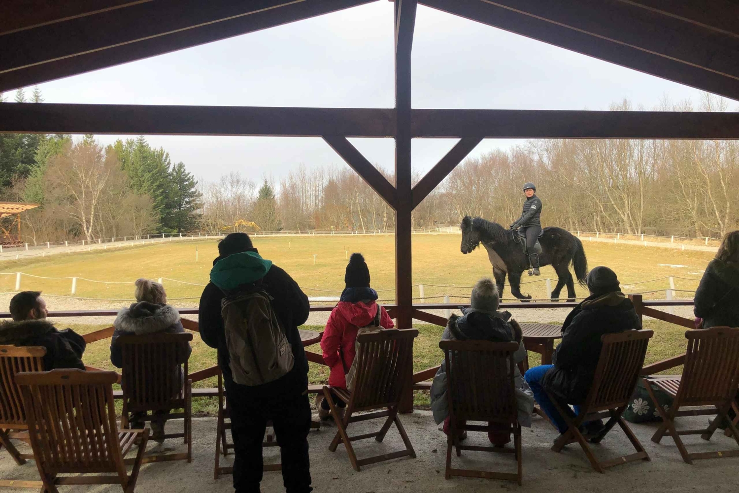 A fazenda TFriðheimar é uma estufa com aquecimento geotérmico e uma fazenda de cavalos. Aqui você conhecerá o minúsculo cavalo islandês e assistirá a uma demonstração de suas andaduras exclusivas. Em seguida, você será levado a um passeio pela estufa, onde tomates e pepinos são produzidos em uma escala impressionante.