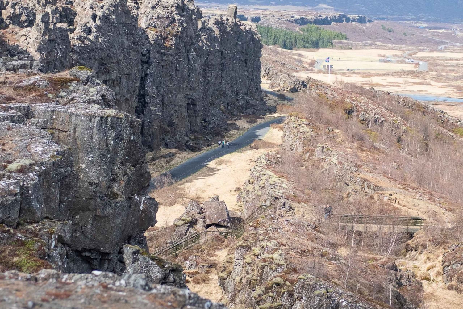 O Parque Nacional Thingvellir é um patrimônio mundial da UNESCO. Aqui os islandeses se reuniam em uma antiga assembleia parlamentar, a mais longa assembleia contínua do mundo, embora agora localizada em Reykjavík. Mas talvez o mais importante seja que aqui é possível ver visivelmente a fenda continental entre as placas tectônicas americana e euroasiática, uma fenda que aumenta de tamanho a cada ano. Caminhe entre os continentes!