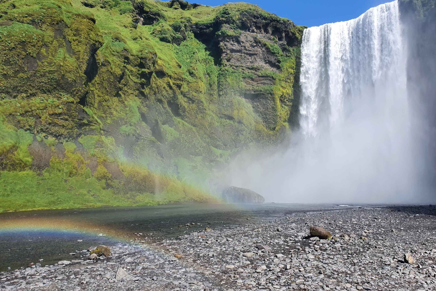 После посещения трех главных достопримечательностей маршрута Золотого кольца мы направляемся на южное побережье к Сельяландсфоссу, одному из самых известных водопадов Исландии. Его высота составляет 63 м/210 футов, и он потрясающе красив. Предлагаются прогулки по тропе за водопадом, которая особенно красива в солнечный день, когда можно увидеть радугу.