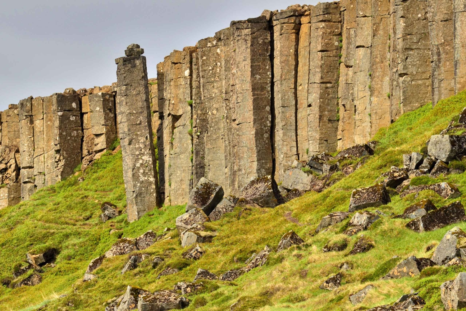 Одна из первых остановок — это огромные базальтовые колонны Гердуберг, которые имеют настолько идеальную шестиугольную форму, что едва ли кажутся естественными.