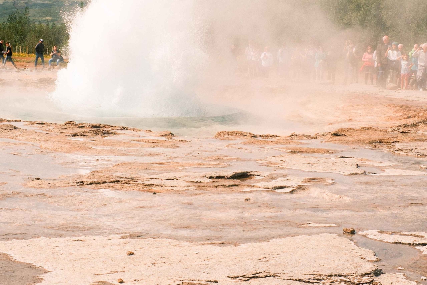 Узнайте об истории парка и его значении для исландского народа. Прогуляйтесь между североамериканской и евразийской тектоническими плитами в ущелье Альманнагья. Посетите геотермальную зону Гейсир, где гейзер Строккюр извергается каждые 5–10 минут, выбрасывая кипящую воду на высоту до 20–40 метров.