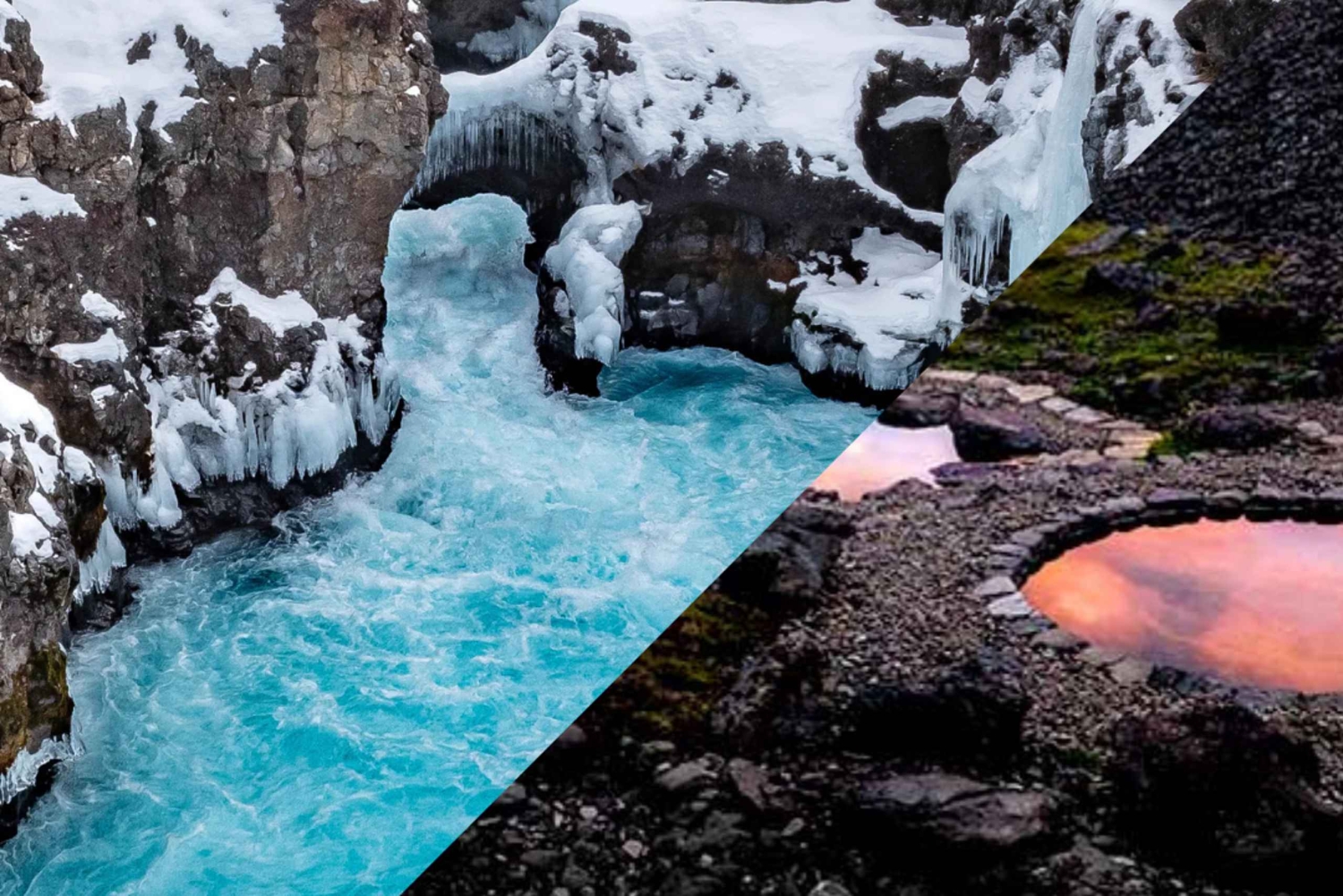 Utforska Silver Circle på en guidad tur från Reykjavík. Besök Deildartunguhver, Hraunfossar och Barnafoss och välj mellan valfria tillägg: snöskoter, ATV, varm källa eller en lavagrottstur.
