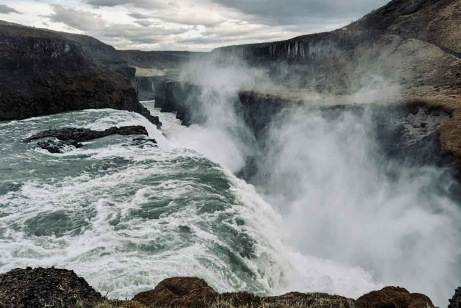 Utforska Islands gyllene cirkel: en oförglömlig resa som blandar historia och natur. Börja i nationalparken Þingvellir, där urgamla geologiska underverk och världens första parlament möts. Bevittna de hisnande utbrotten från gejsern Strokkur i Geysirområdet, ett bevis på naturens kraft. Gullfoss, 'det gyllene fallet', erbjuder ett majestätiskt skådespel med sina vattenkaskader, och avsluta med att besöka det djupblå vattnet vid Keridkratern. Dyk djupt ner i Islands fängslande landskap och spännande historia på denna anmärkningsvärda rundtur. Stopp vid Secret Lagoon eller Hvammsvík spa efter Golden Circle-turen är valfritt.