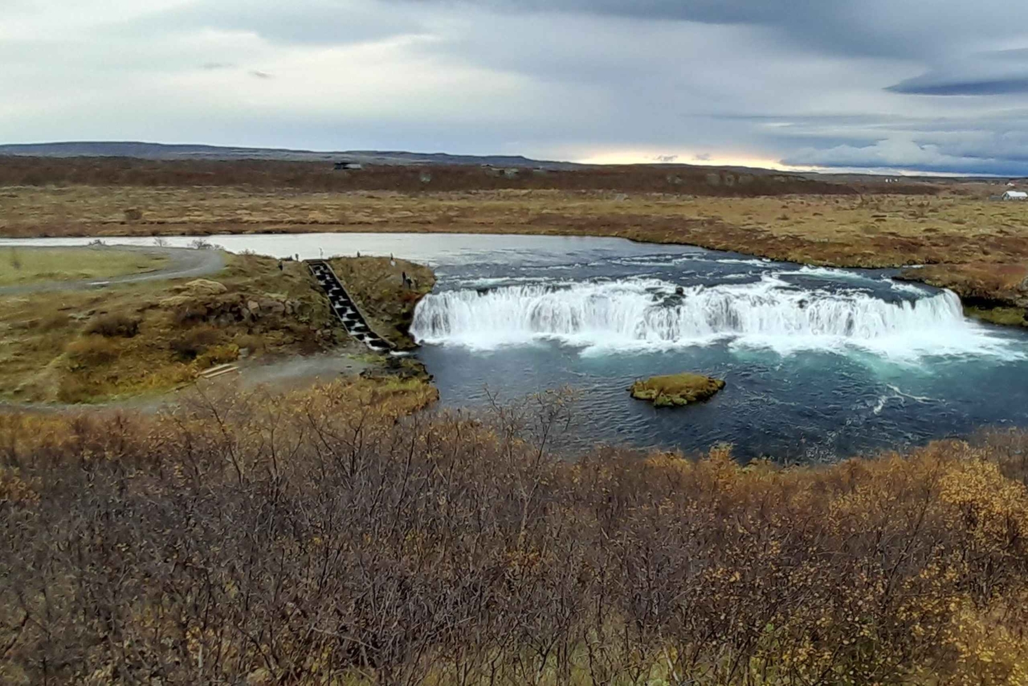 Upptäck Faxi-vattenfallet, även känt som Vatnsleysufoss, ett fridfullt och lättillgängligt vattenfall. Se det från en närliggande plattform eller promenera längs en kort stig för att komma närmare – en idealisk plats för lugna naturfoton. I det geotermiska området Geysir kan du se gejsern Strokkur spruta kokande vatten mot himlen med några minuters mellanrum. Utforska bubblande varma källor och ångventiler medan du känner den råa geotermiska energin under dina fötter.