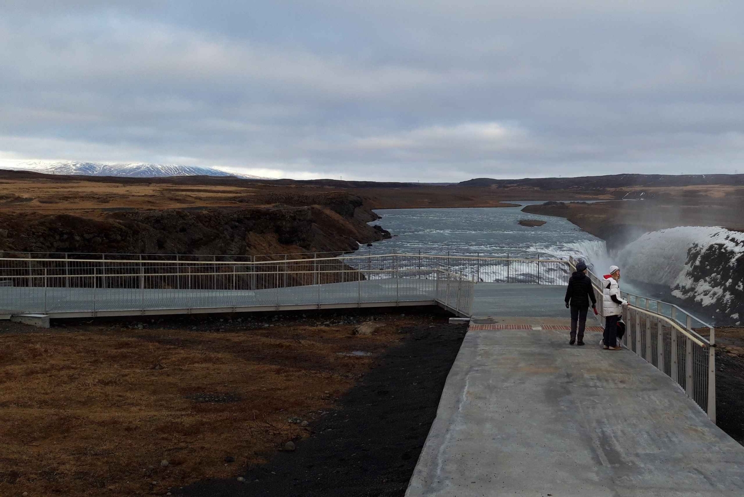 Besök sedan Gullfoss, ett av Islands mest ikoniska och fotograferade vattenfall. Gullfoss, som fÃ¥r sitt vatten frÃ¥n den glaciärdrivna floden HvÃtá, har tvÃ¥ kraftfulla vattenfall och är lätt att se frÃ¥n flera väl underhÃ¥llna stigar och plattformar.