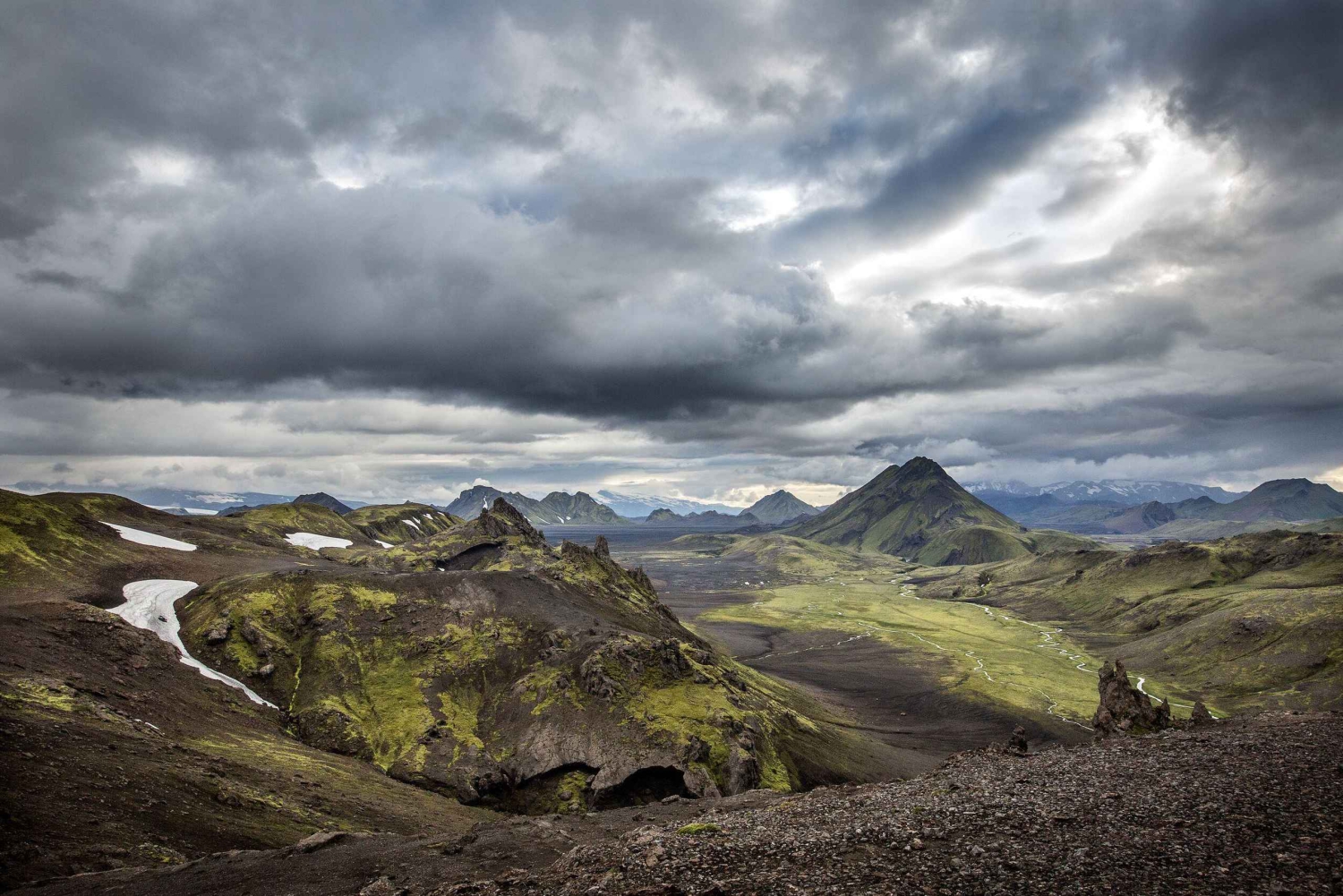 Härifrån lämnar du asfalterade vägar – och civilisationen – bakom dig. Det riktiga äventyret börjar när du svänger inåt landet och följer ojämna grusvägar in i Fjallabak naturreservat. Under en sträcka kör du parallellt med och till och med korsar den berömda Laugavegur-leden – en rutt som de flesta vandrare tar flera dagar att gå. Men med en specialanpassad Super Jeep kan du utforska dessa avlägset belägna platser bekvämt och på bara en dag.