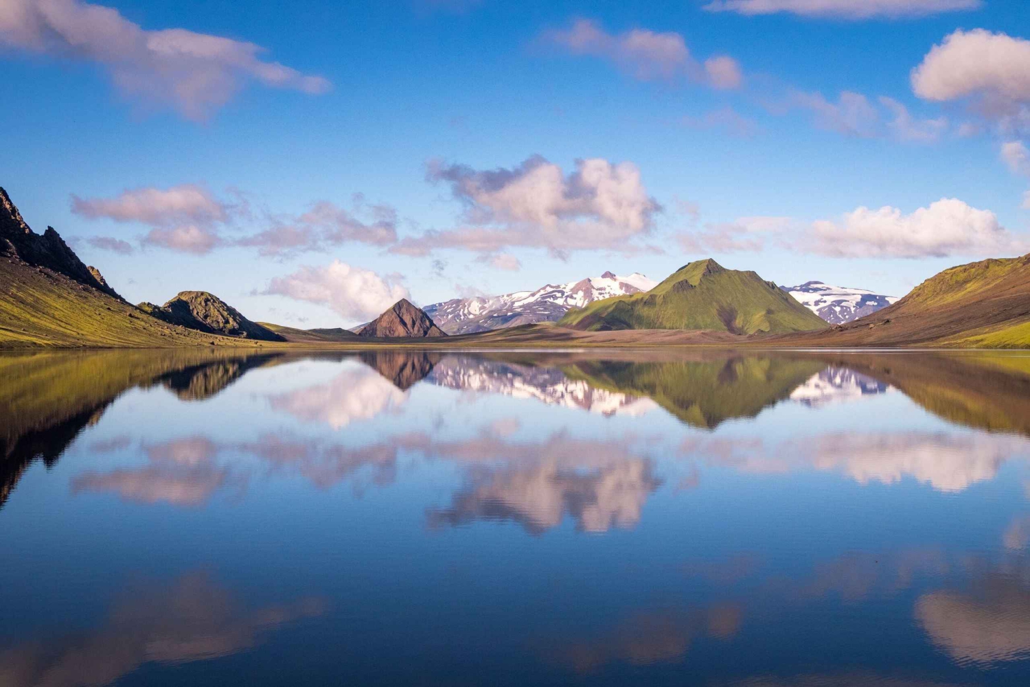 Stanna till vid flera riktigt avlägset belägna platser, bland annat Mælifell, en slående grön vulkan som reser sig ur sanden, Laufafell, en fridfull bergsjö inbäddad i mossiga kullar, Álftavatn, en lugn sjö omgiven av ryolitbackar, och dolda vattenfall som få resenärer någonsin får se.